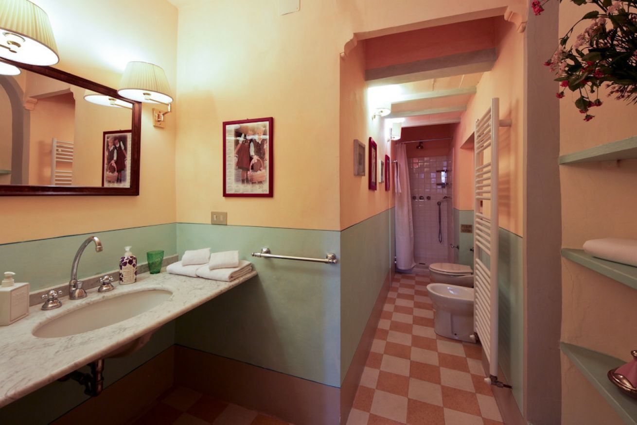 When you first walk in you are greeted by the warm and inviting living room/dining room. Here you will find a cozy couch and flatscreen TV. Right off of this is the kitchen stocked with all the amenities you will need to prepare meals at home. As you continue through the apartment you will find the master bedroom with a queen-sized bed. Next to the master is the second bedroom with two single beds. Finally, you will find the two spacious bathrooms. Air conditioning is present in the bedrooms. This apartment has the comfortableness and location to make your stay in Florence perfect!