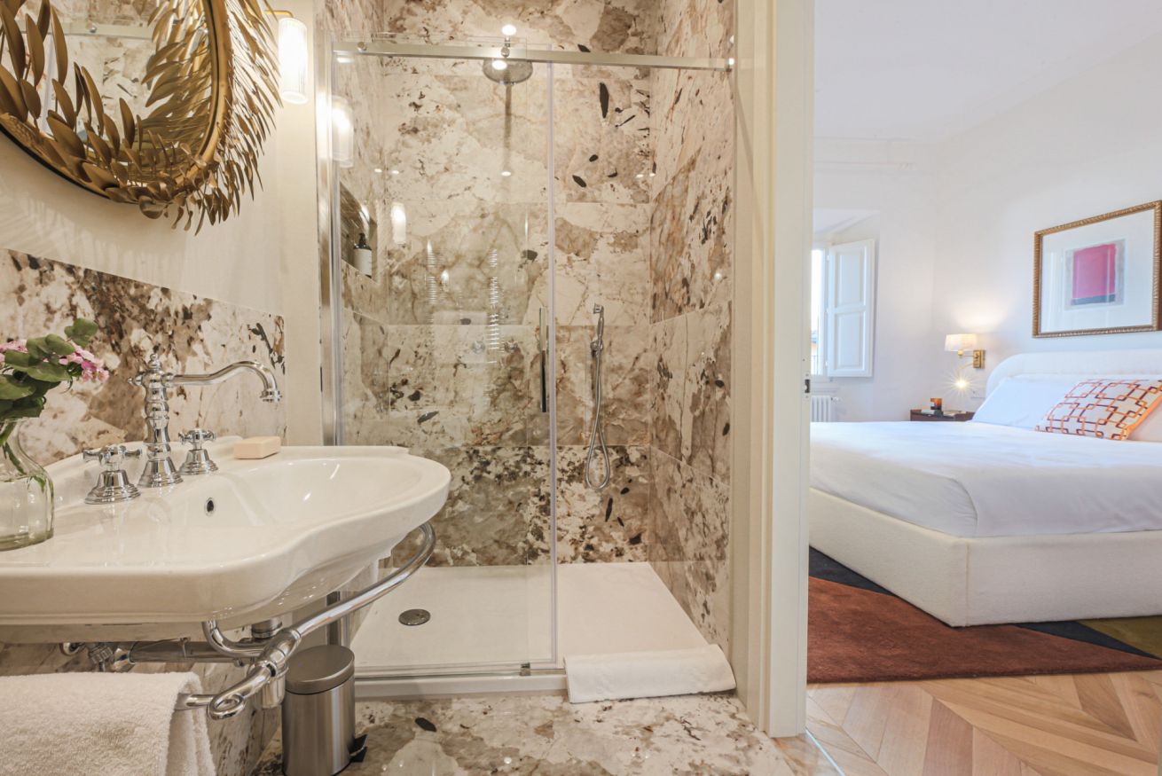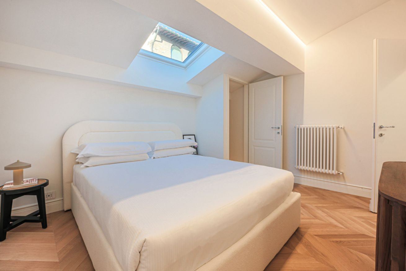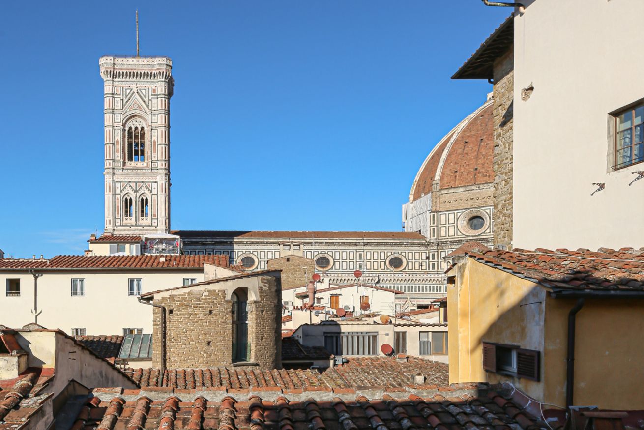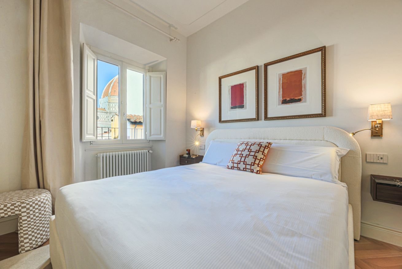 Diverse stanze come la camera padronale, il soggiorno e la sala da pranzo offrono una vista mozzafiato sull’iconico Duomo di Firenze. Una delle suite si apre su una terrazza privata con vista su Palazzo Vecchio, mentre una camera situata al livello superiore dispone di bagno privato e garantisce un’oasi di tranquillità.
