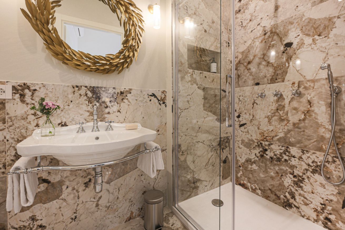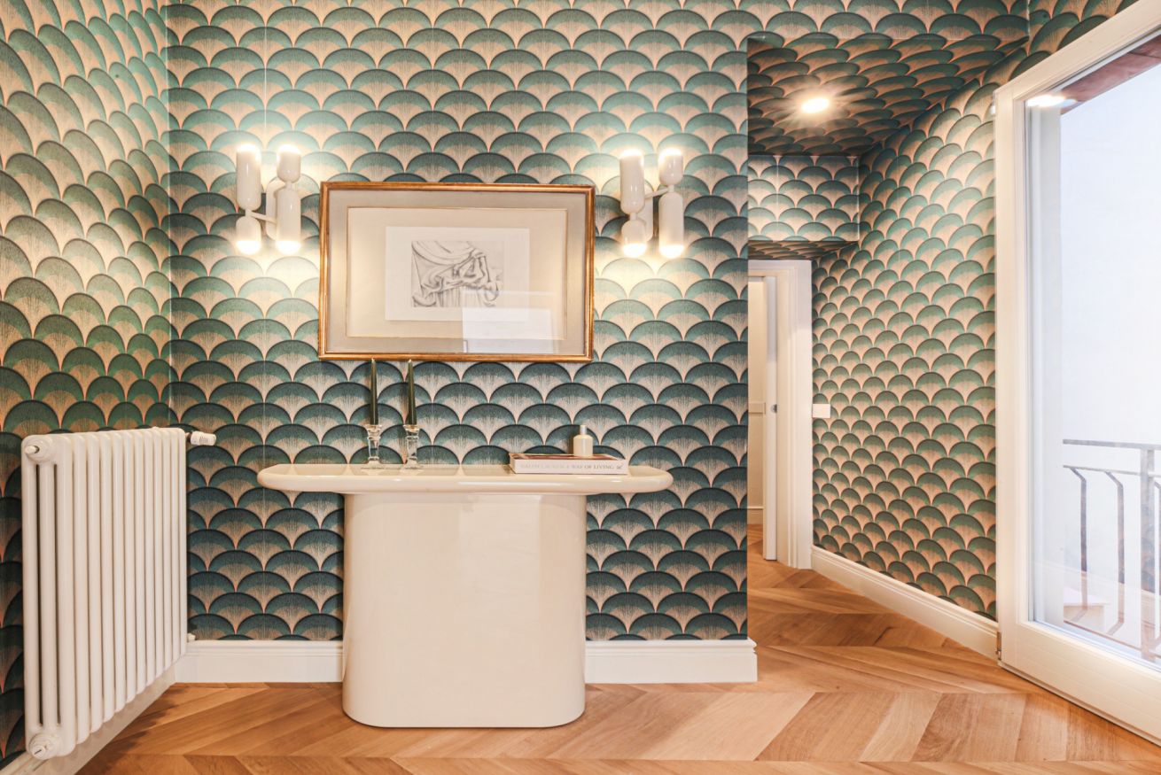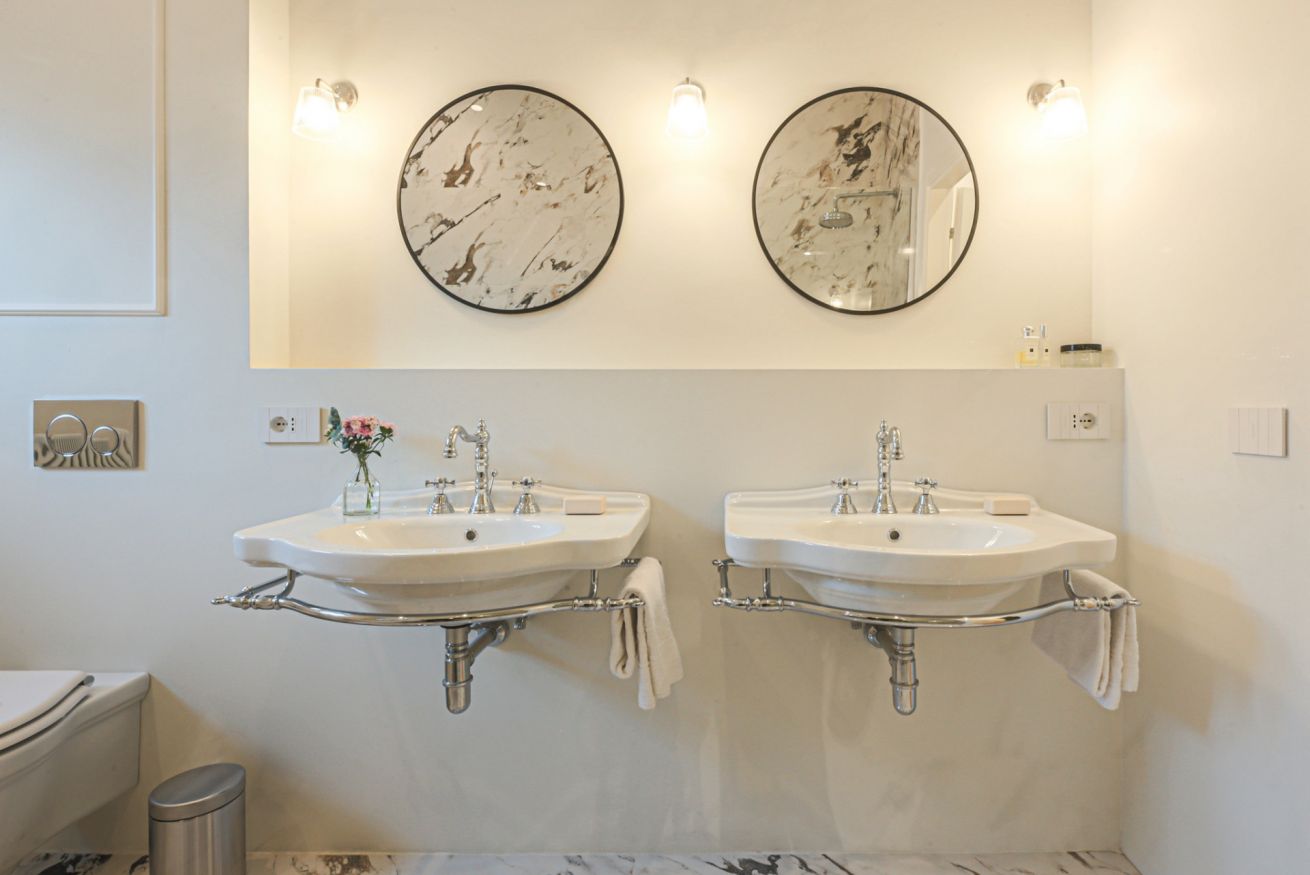 Progettato per ospitare fino a 8 persone, questa residenza elegante offre 4 splendide suites, ognuna con il proprio bagno privato, oltre ad un pregevole bagno di servizio impreziosito da dettagli raffinati, come la carta da parati a tema aviario e accessori selezionati con cura.