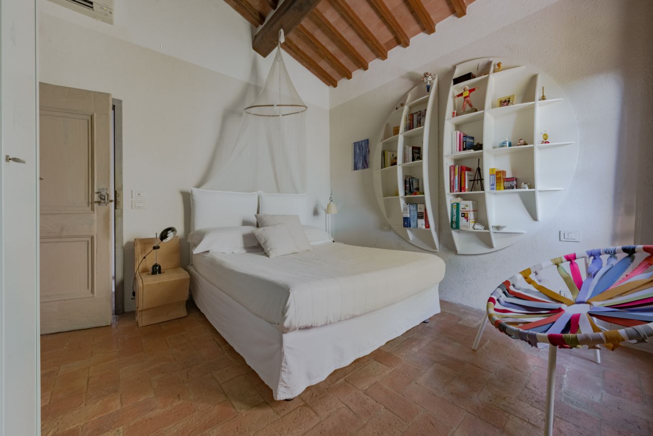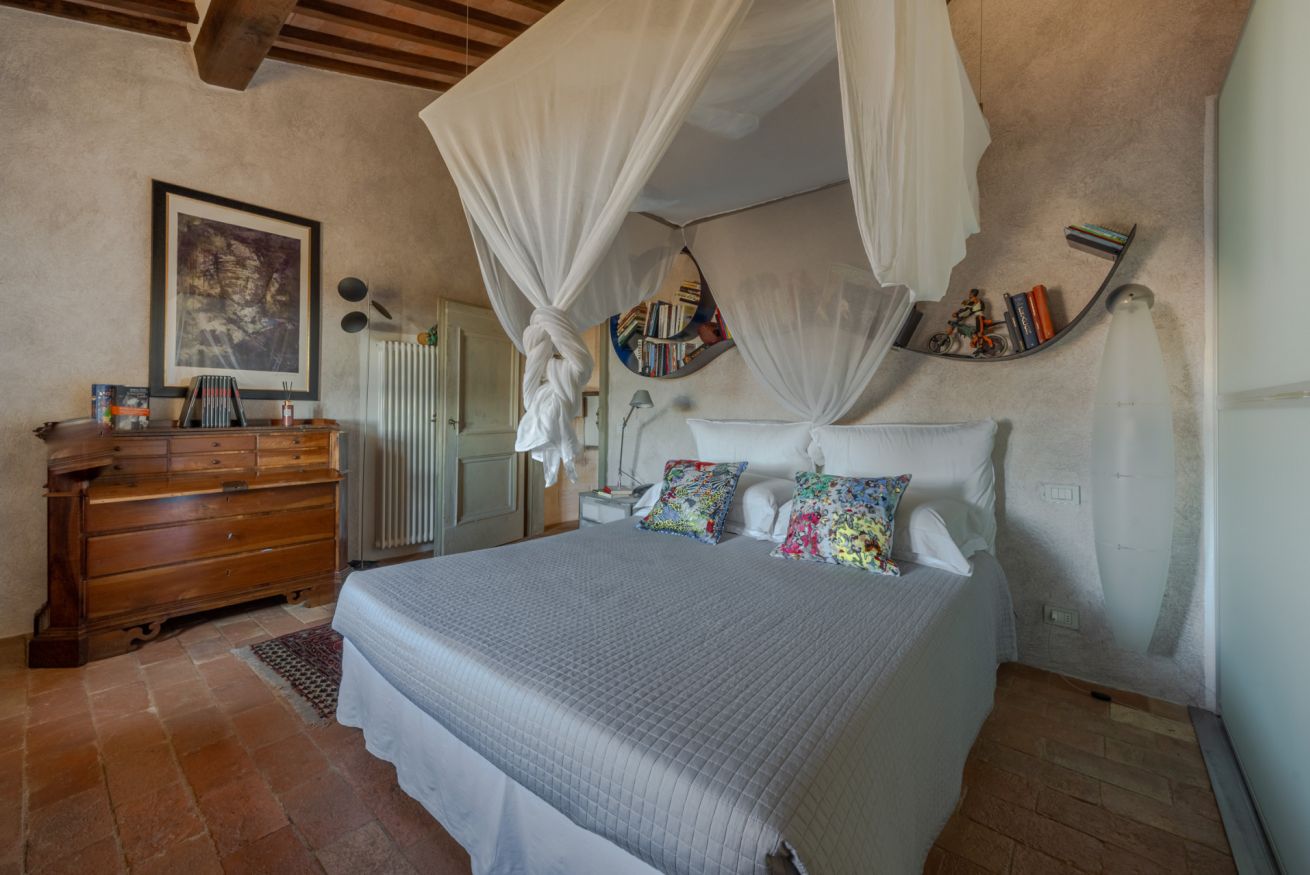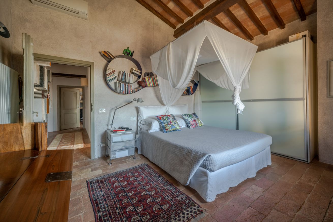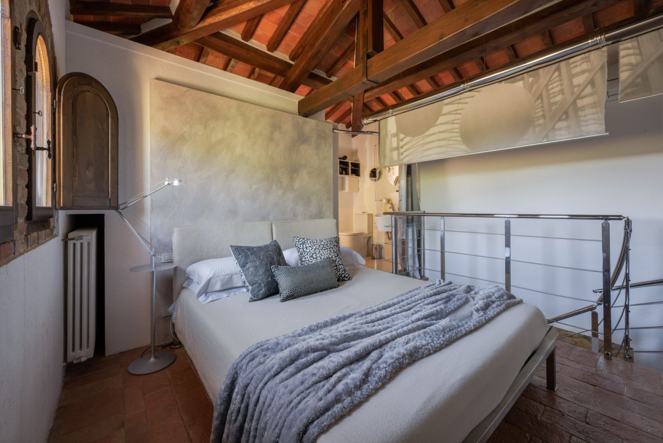 Al piano superiore si trova l'area notte composta da 5 camere matrimoniali, ognuna arredata con stile ed elementi originali che le rendono diverse le une dalle altre. Quattro camere sono distribuite lungo un bel corridoio arricchito da elementi decorativi moderni che si integrano splendidamente con le porte originali recuperate. Sullo stesso piano si trovano 3 bagni completi, alcuni sia con doccia che con vasca. Lungo il corridoio si trova anche un delizioso salottino ricco di armadi capienti e dal quale si accede all'ultimo livello della casa tradizionalmente chiamato "Piccionaia". Qui si trova la 5^ ed ultima camera con bagno en-suite.