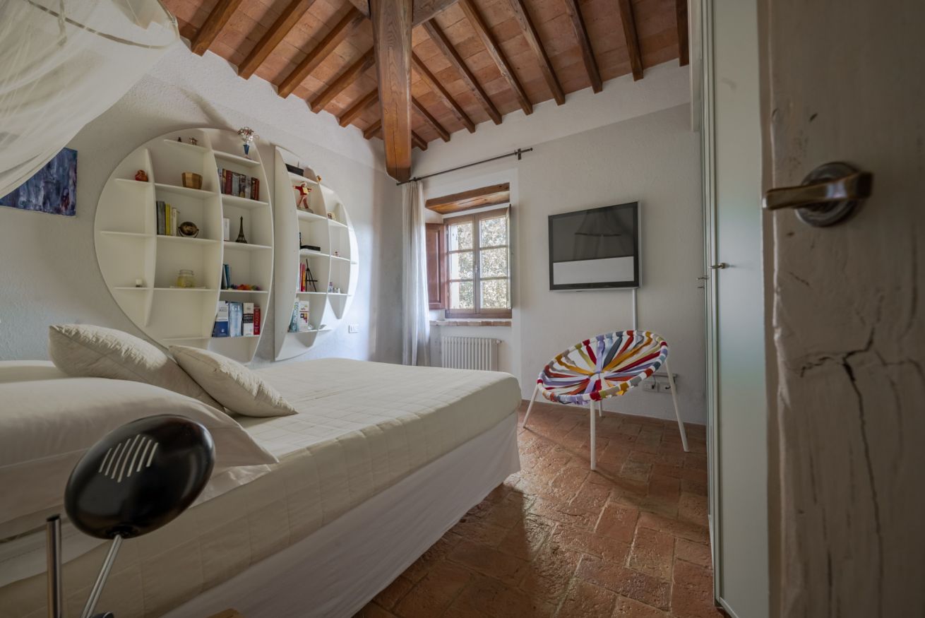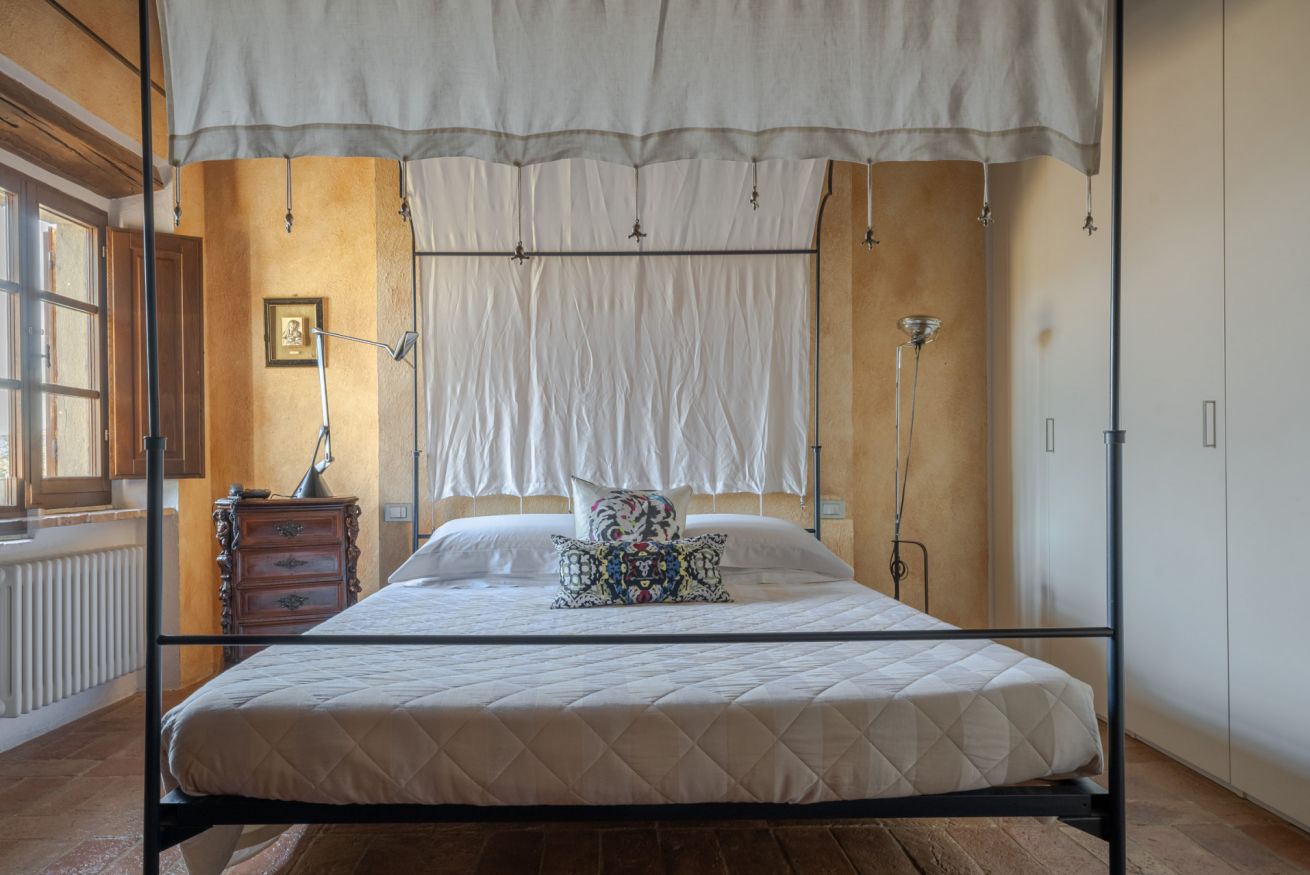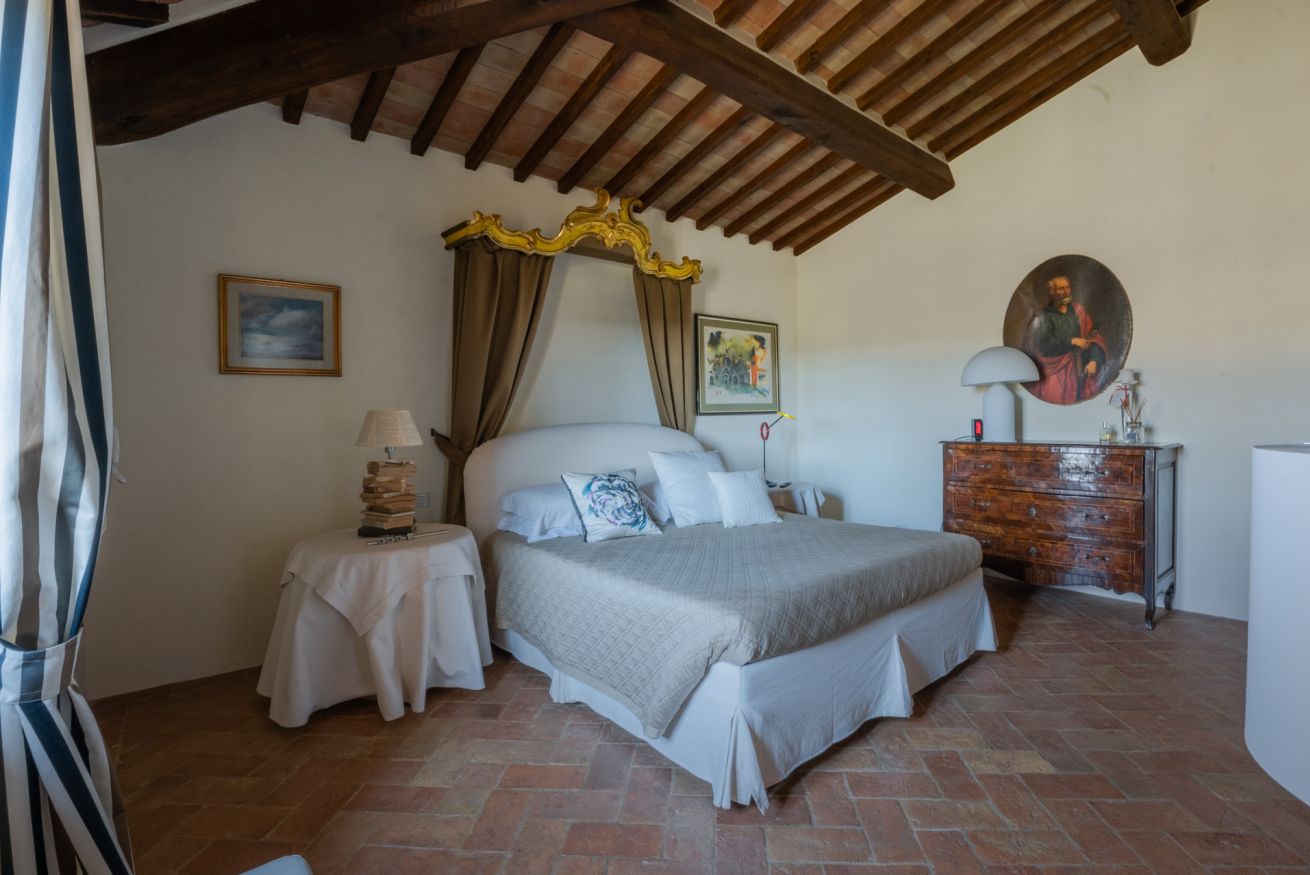 Al piano superiore si trova l'area notte composta da 5 camere matrimoniali, ognuna arredata con stile ed elementi originali che le rendono diverse le une dalle altre. Quattro camere sono distribuite lungo un bel corridoio arricchito da elementi decorativi moderni che si integrano splendidamente con le porte originali recuperate. Sullo stesso piano si trovano 3 bagni completi, alcuni sia con doccia che con vasca. Lungo il corridoio si trova anche un delizioso salottino ricco di armadi capienti e dal quale si accede all'ultimo livello della casa tradizionalmente chiamato "Piccionaia". Qui si trova la 5^ ed ultima camera con bagno en-suite.