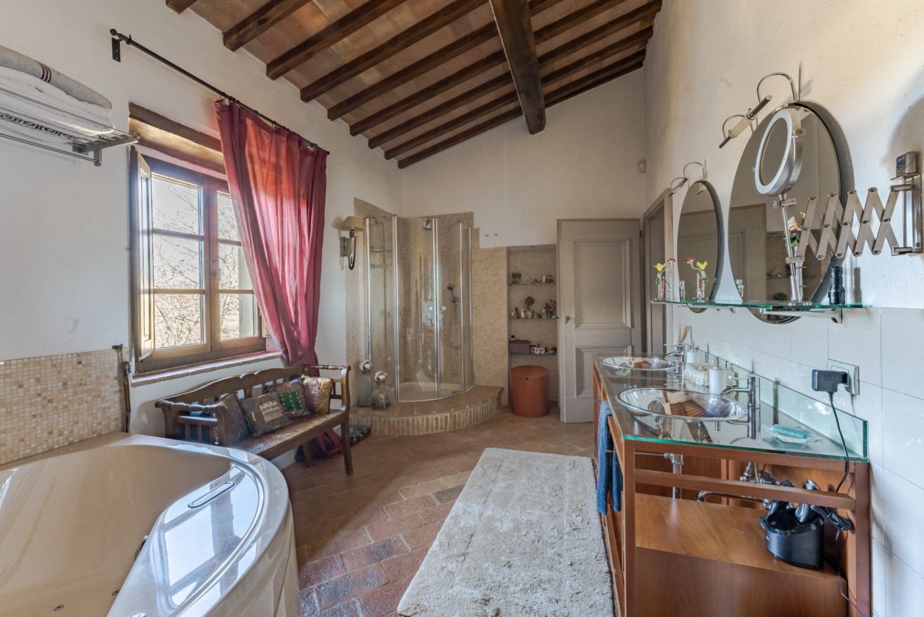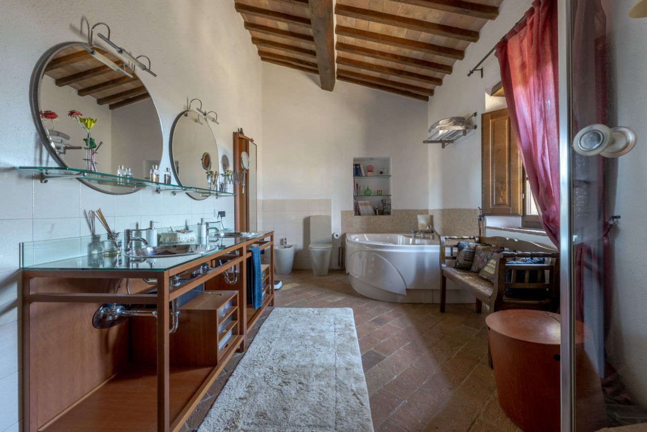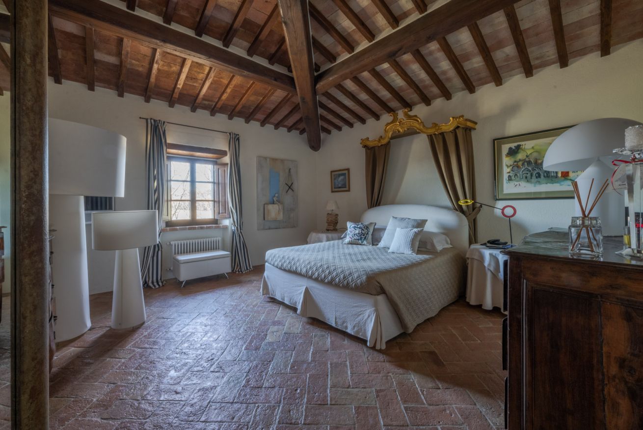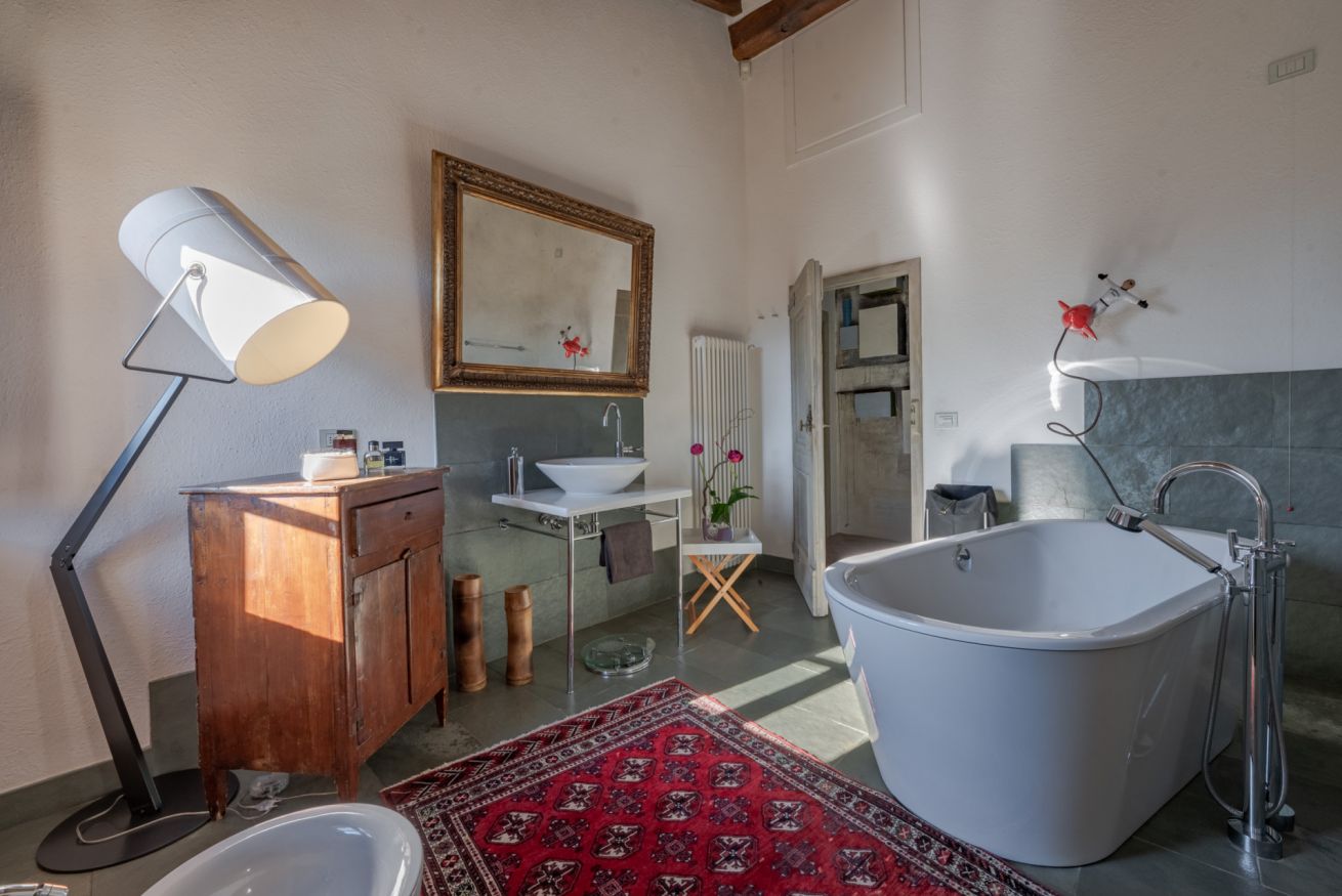 Al piano superiore si trova l'area notte composta da 5 camere matrimoniali, ognuna arredata con stile ed elementi originali che le rendono diverse le une dalle altre. Quattro camere sono distribuite lungo un bel corridoio arricchito da elementi decorativi moderni che si integrano splendidamente con le porte originali recuperate. Sullo stesso piano si trovano 3 bagni completi, alcuni sia con doccia che con vasca. Lungo il corridoio si trova anche un delizioso salottino ricco di armadi capienti e dal quale si accede all'ultimo livello della casa tradizionalmente chiamato "Piccionaia". Qui si trova la 5^ ed ultima camera con bagno en-suite.
