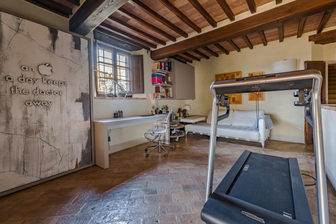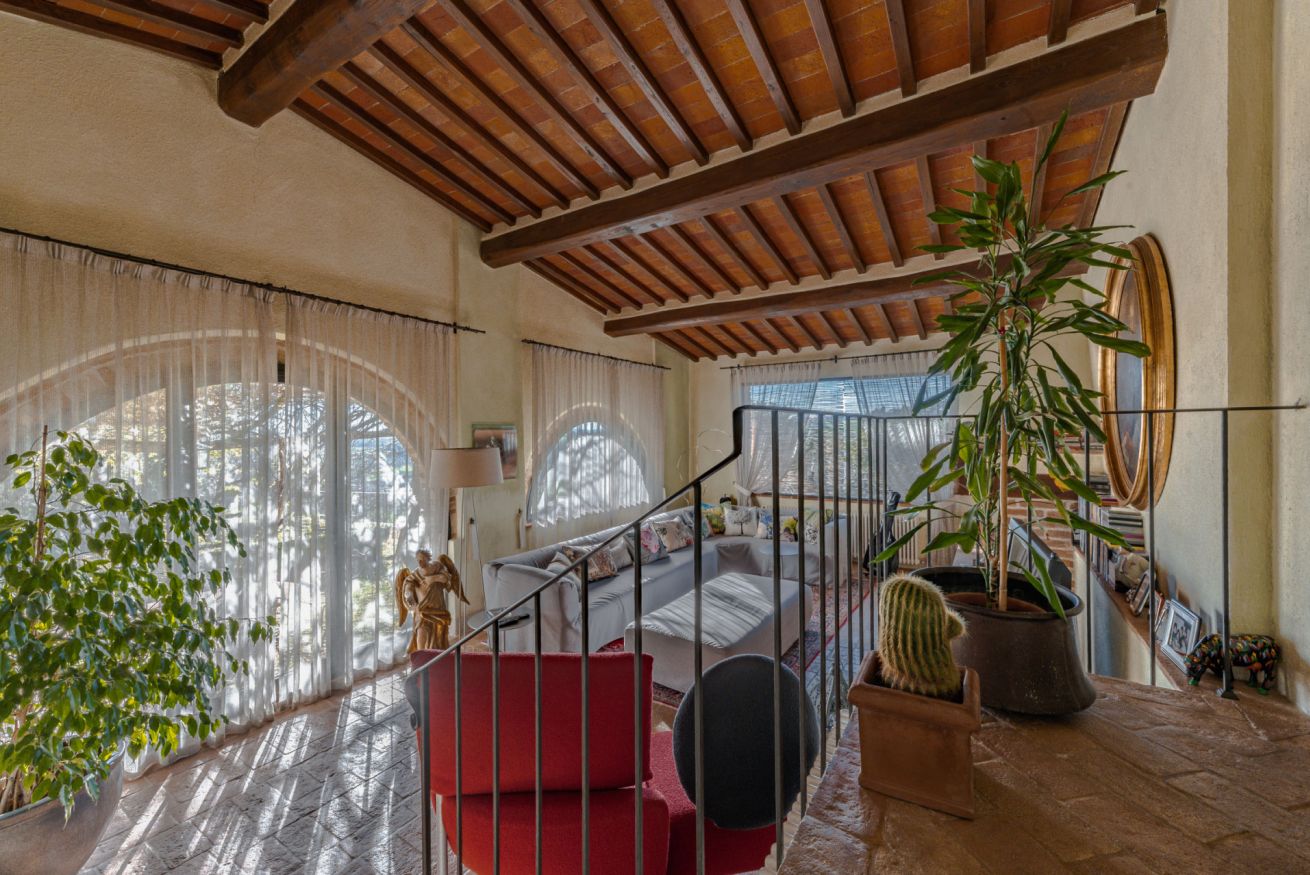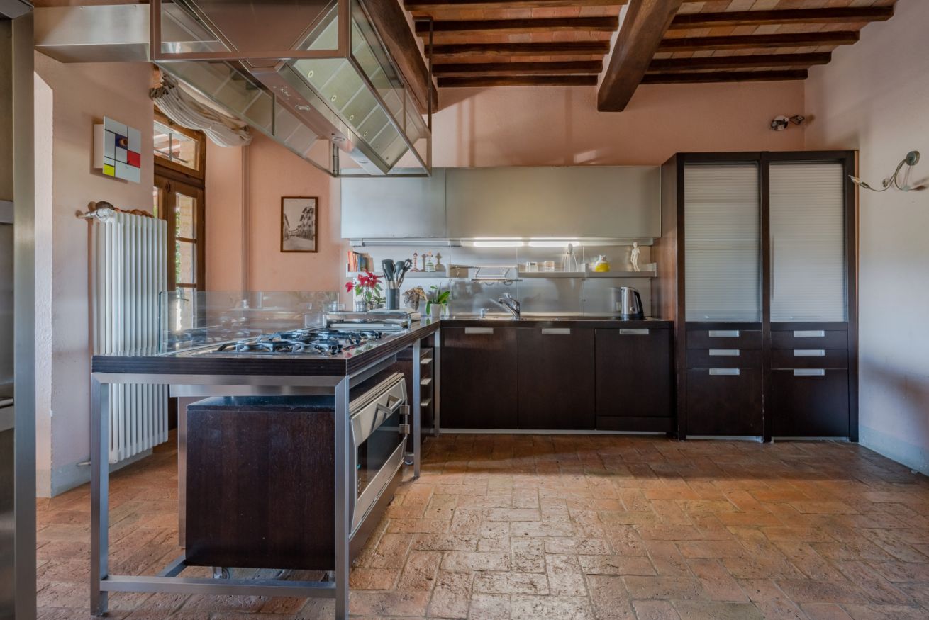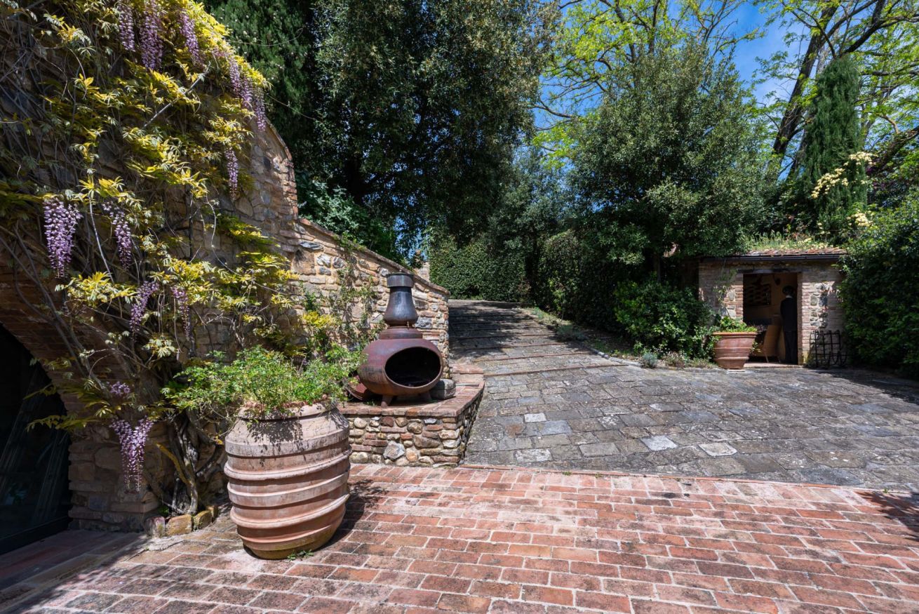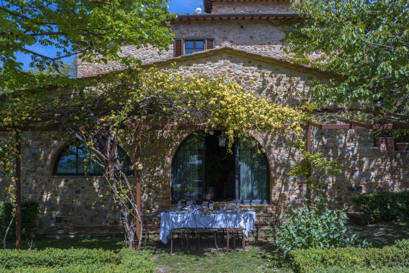 Al piano terra si trova un'elegante anticamera che introduce ad un'area giorno incorniciata da un imponente camino in pietra serena. Questa zona dall'atmosfera calda e familiare, si compone di un salottino e dell'accogliente sala da pranzo, arredata in stile rustico ma con felici incursioni contemporanee. Sia l'atrio che la sala da pranzo confinano con l'ampia e modernissima cucina totalmente attrezzata e dalle dimensioni professionali. Sul retro della cucina si trova anche una piccola area pranzo che accede al giardino, ideale per spuntini leggeri o colazioni.