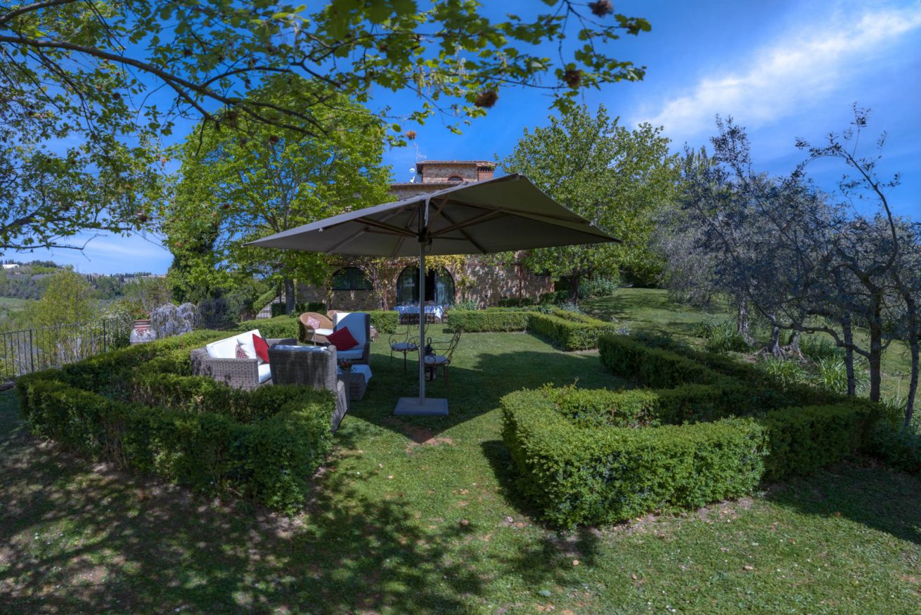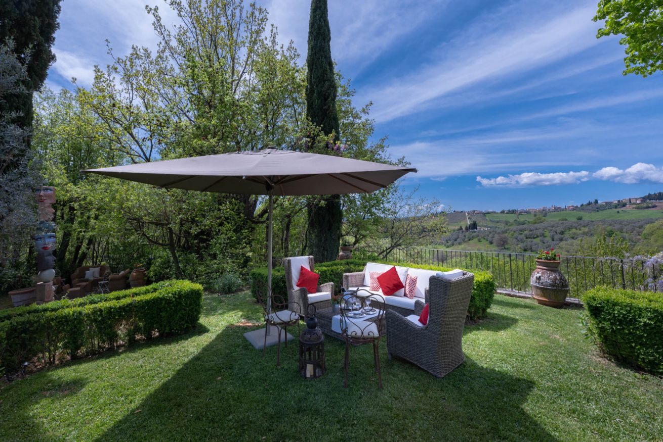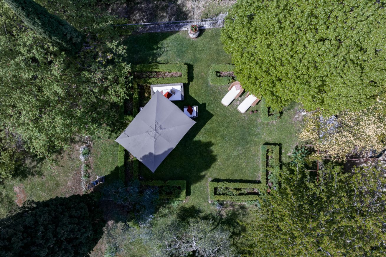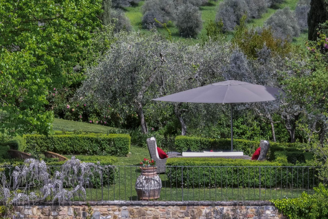 Tutta la proprietà è immersa in un grande spazio verde, arredato con numerose aree living esterne e che offre scorci mozzafiato dei borghi circostanti. La villa è dotata inoltre di una romantica veranda sotto la quale è possibile consumare memorabili pasti al fresco durante la stagione estiva.