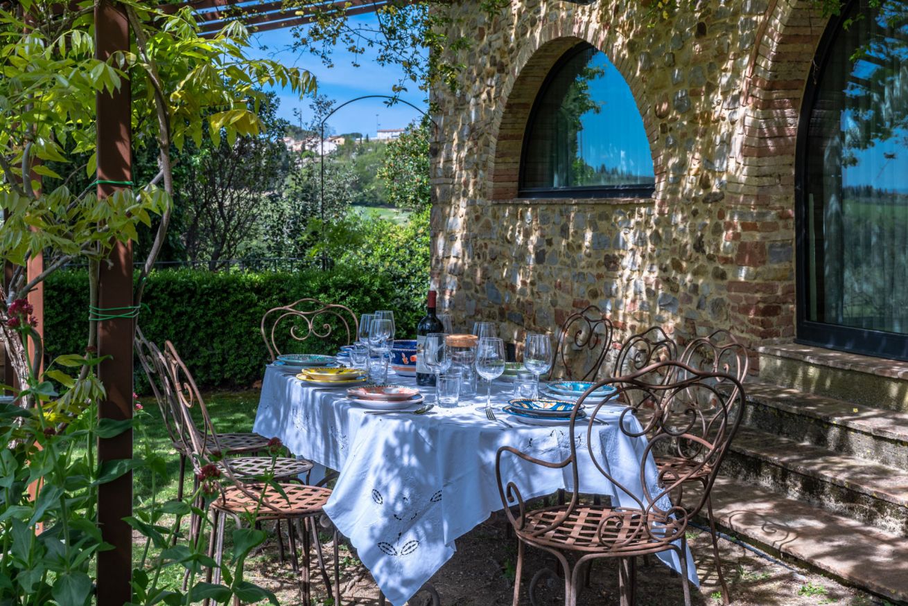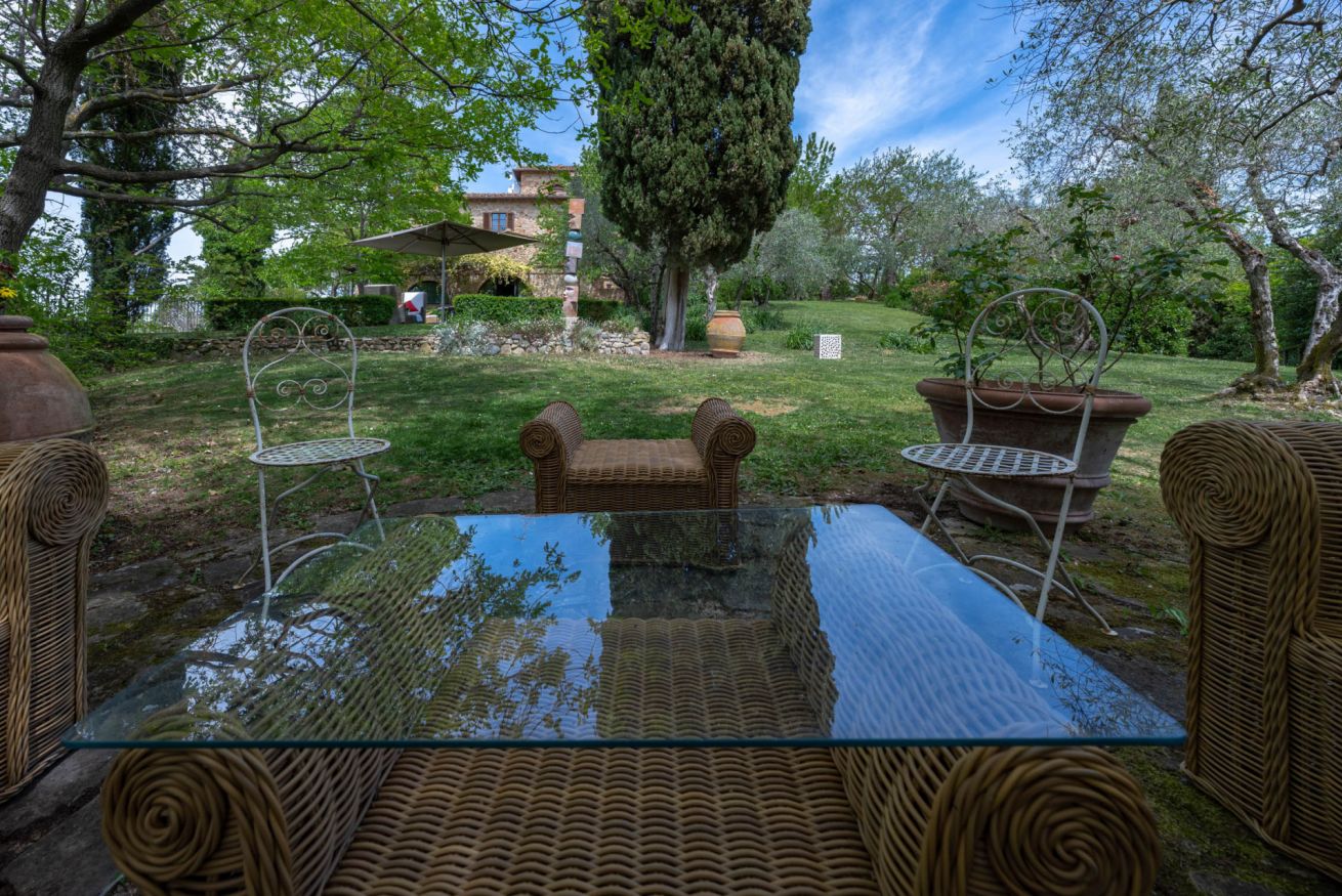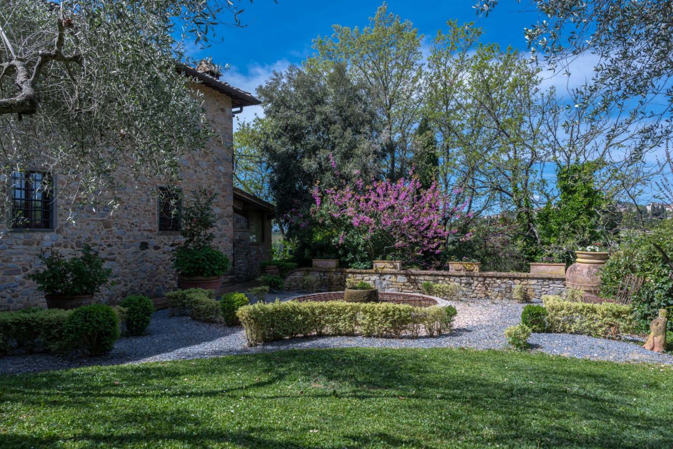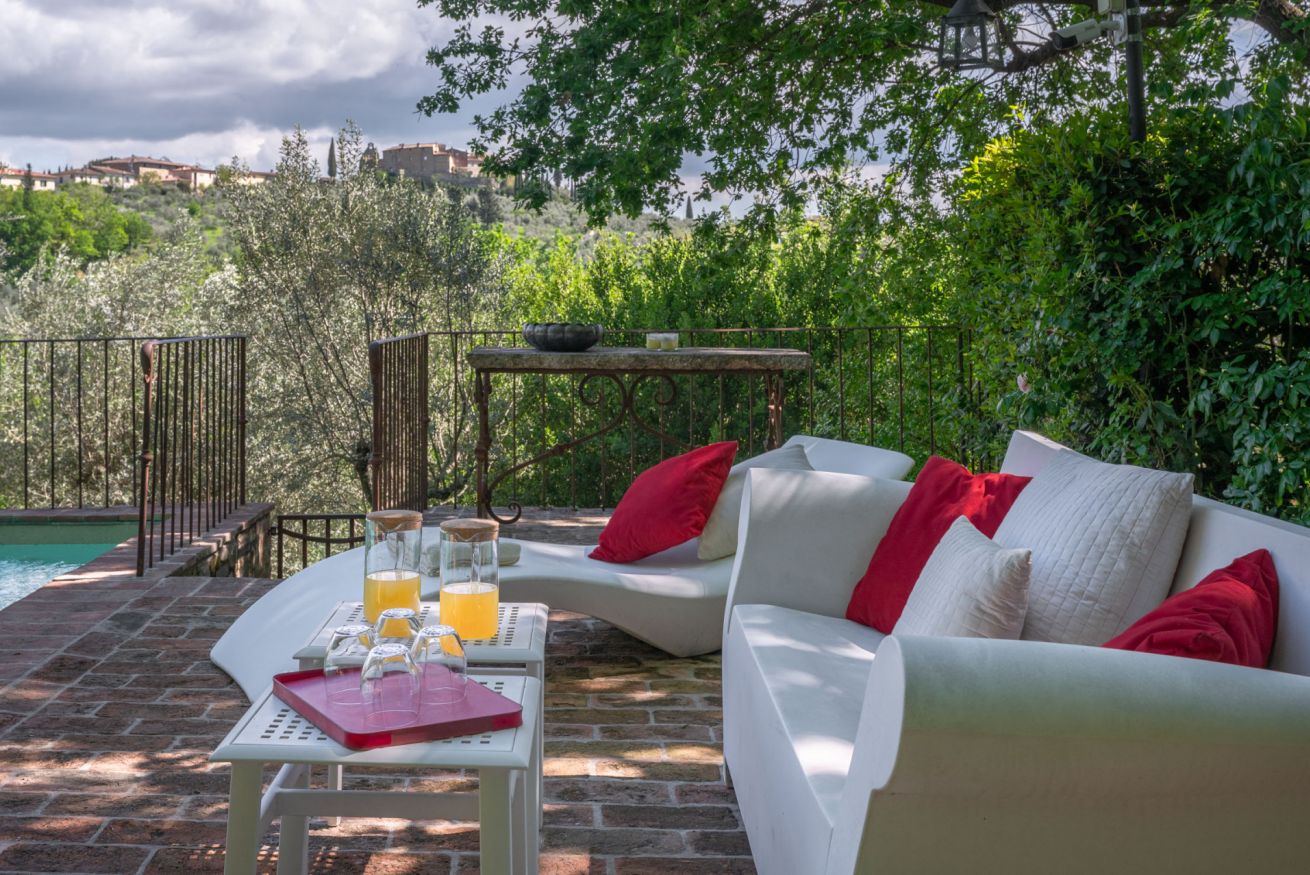 Tutta la proprietà è immersa in un grande spazio verde, arredato con numerose aree living esterne e che offre scorci mozzafiato dei borghi circostanti. La villa è dotata inoltre di una romantica veranda sotto la quale è possibile consumare memorabili pasti al fresco durante la stagione estiva.