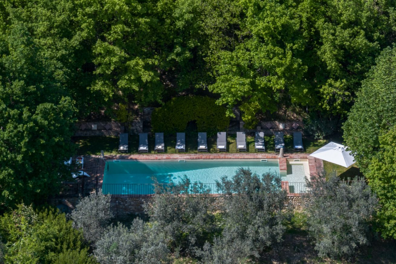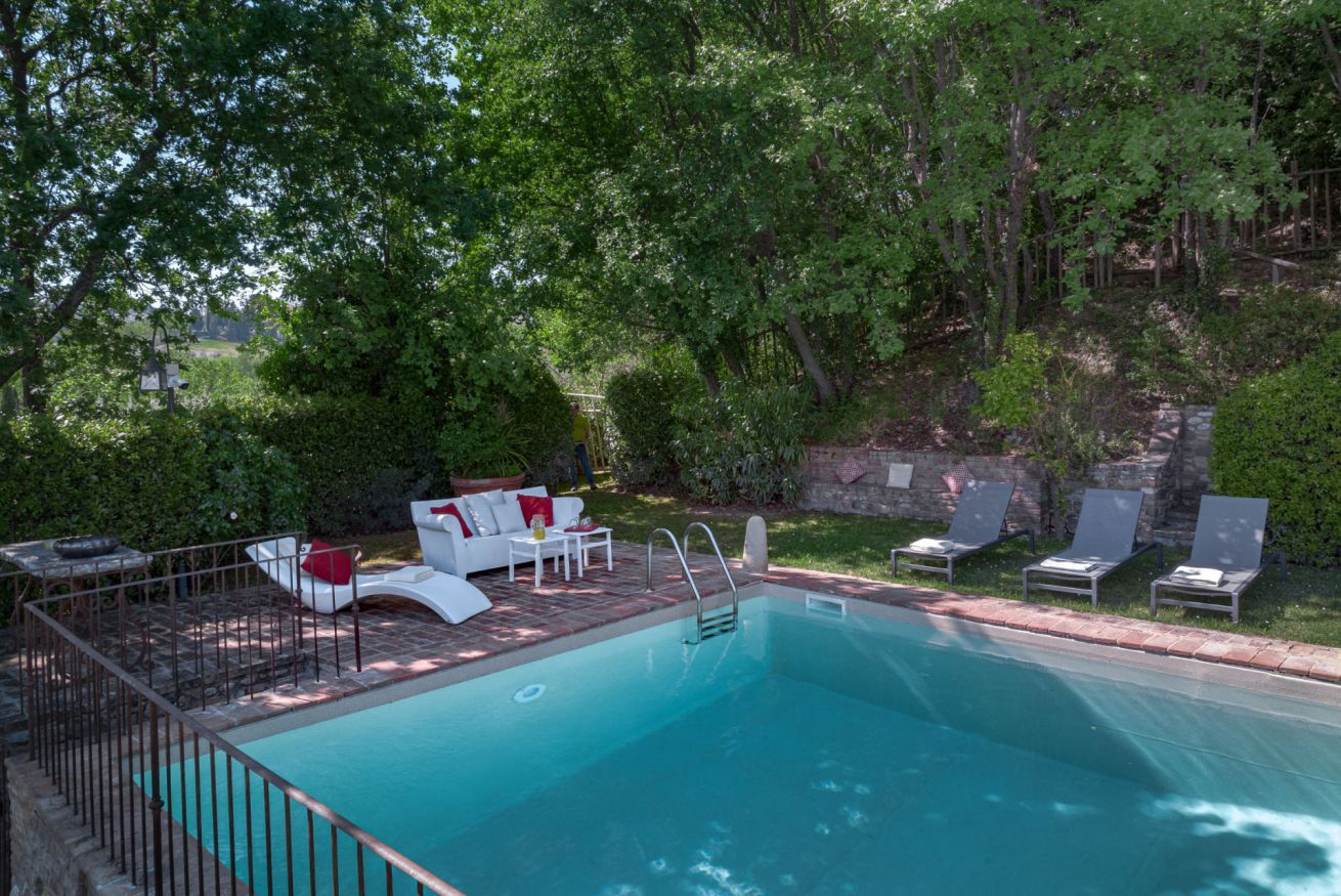 La grande piscina privata si trova appena sotto la villa, con accesso recintato per garantire la sicurezza. Il bordo piscina è arredato con lettini, ombrellone ed area relax. La piscina (non riscaldata) apre da aprile sino alla fine di ottobre.