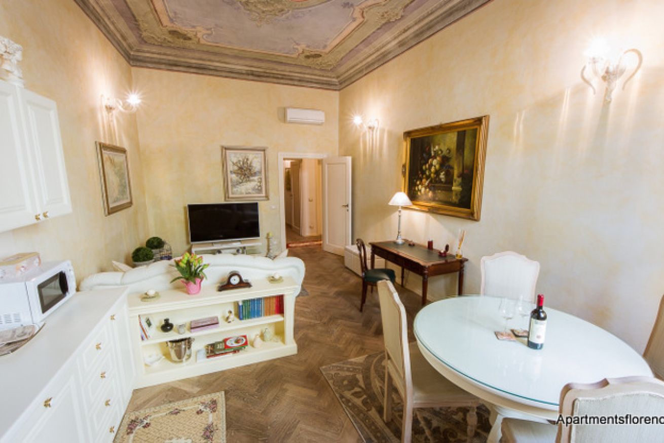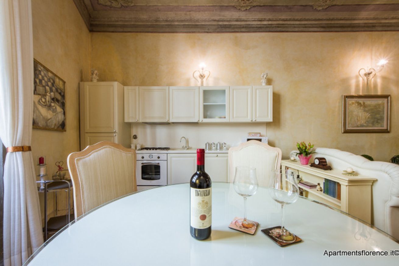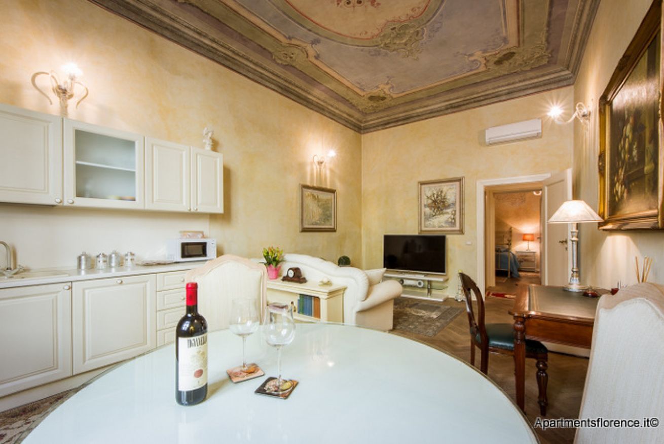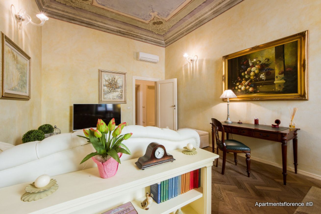 Questo appartamento magnificamente ristrutturato ed arredato si trova al primo piano di un antico elegante palazzo di Via Ghibellina, a due passi da Piazza Santa Croce.