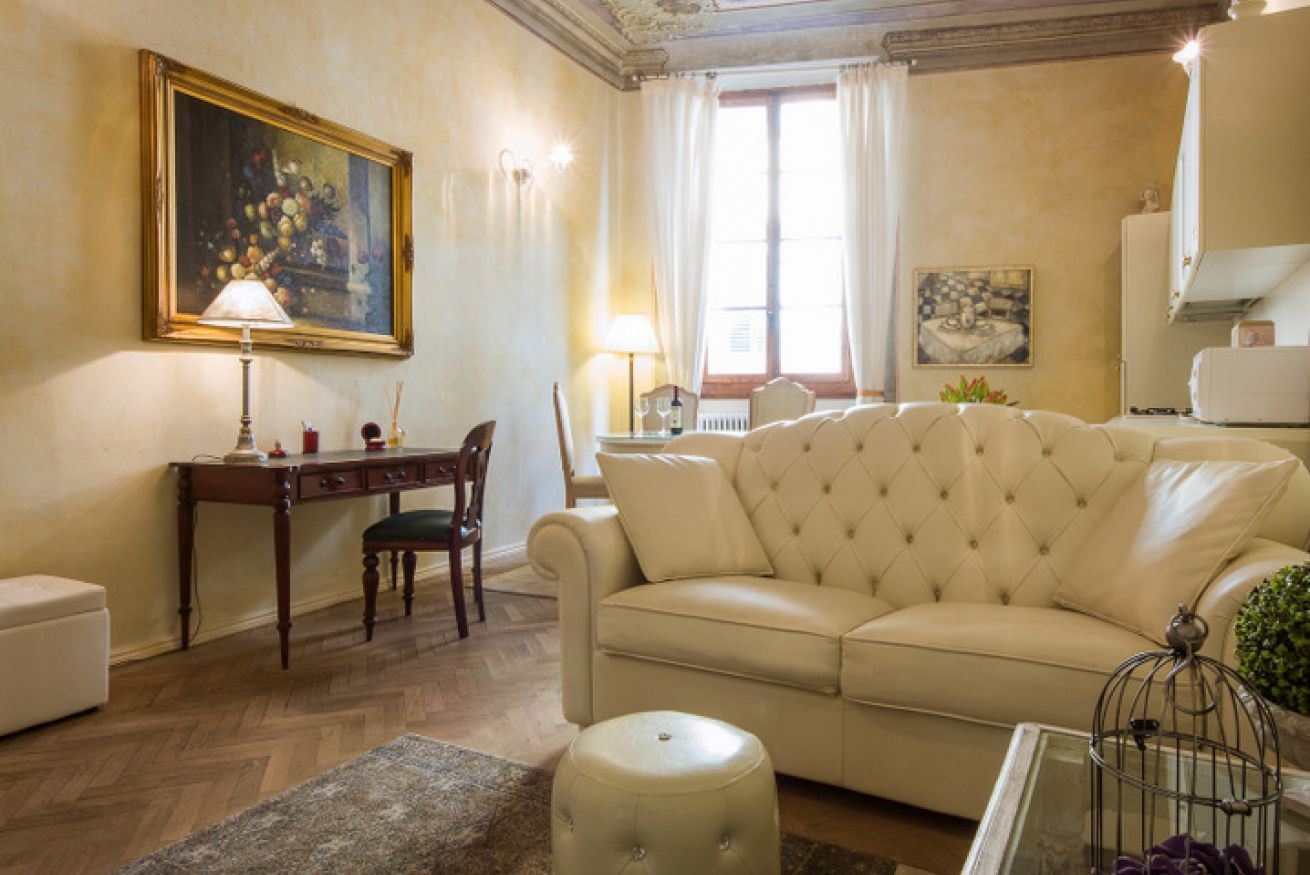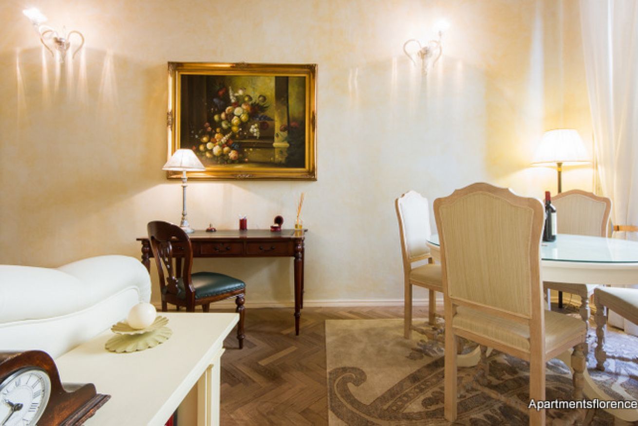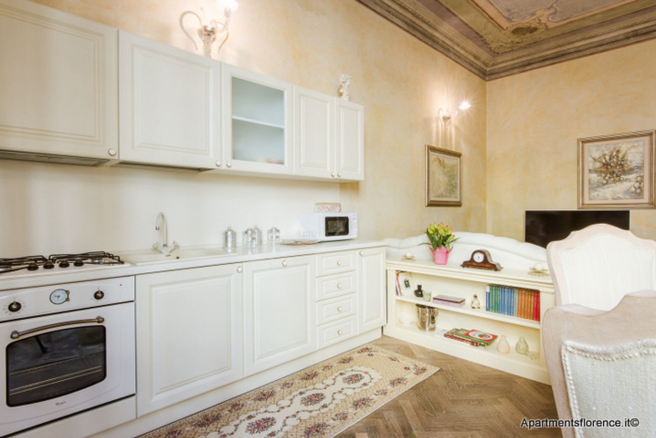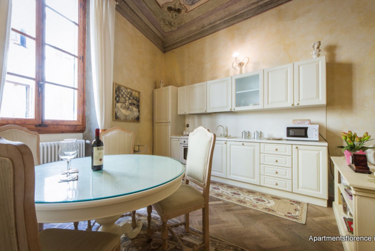 Questo appartamento magnificamente ristrutturato ed arredato si trova al primo piano di un antico elegante palazzo di Via Ghibellina, a due passi da Piazza Santa Croce.