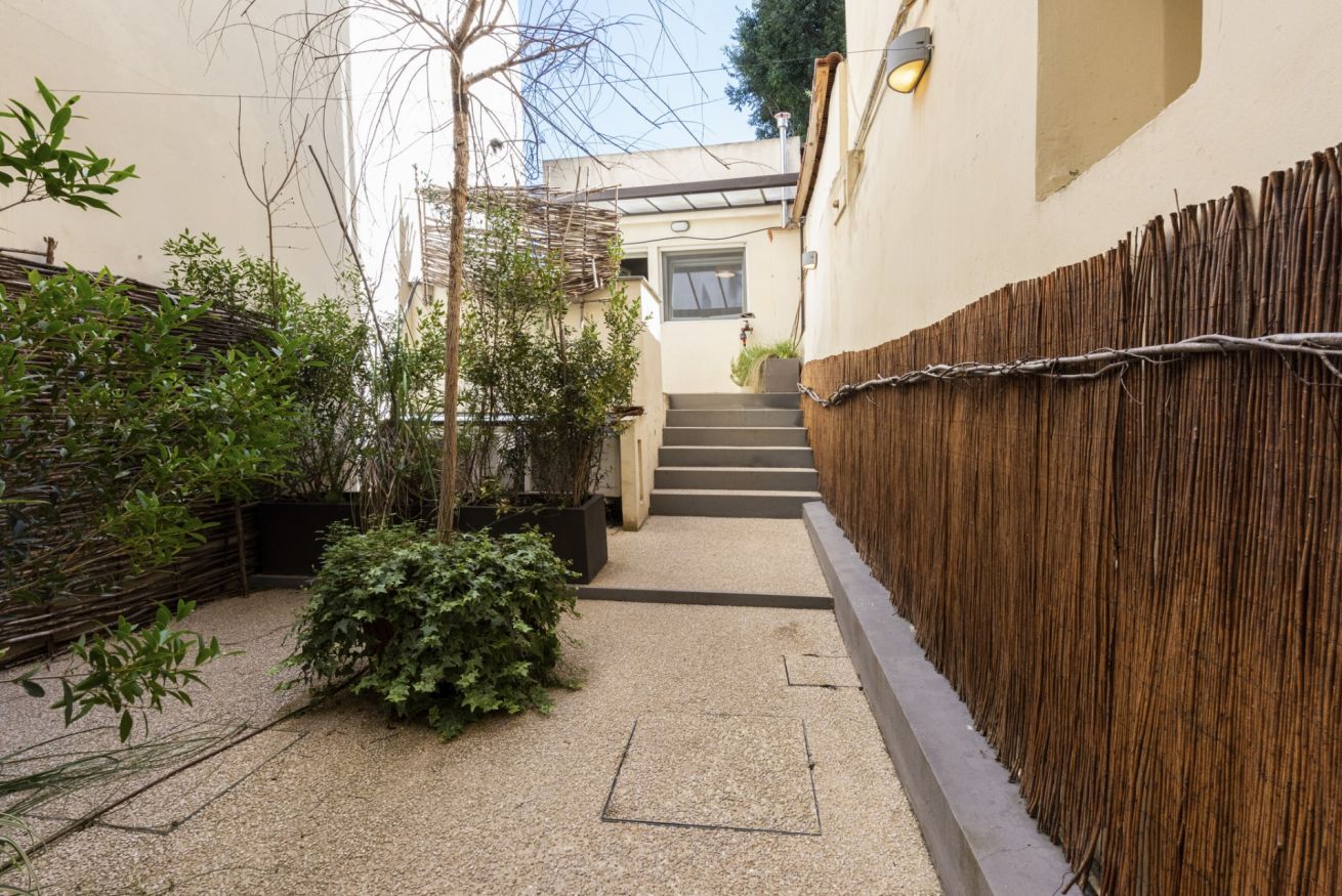 Si accede attraverso una corte interna di cui una porzione è ad uso esclusivo degli ospiti di Tasso Colors. Dotata di un tavolino e 2 sedie è un luogo piacevole dove poter consumare pasti e bevande durante la stagione estiva.