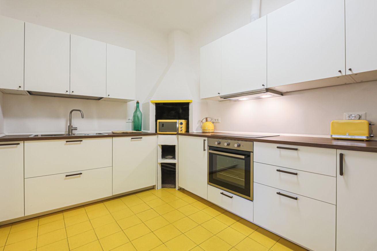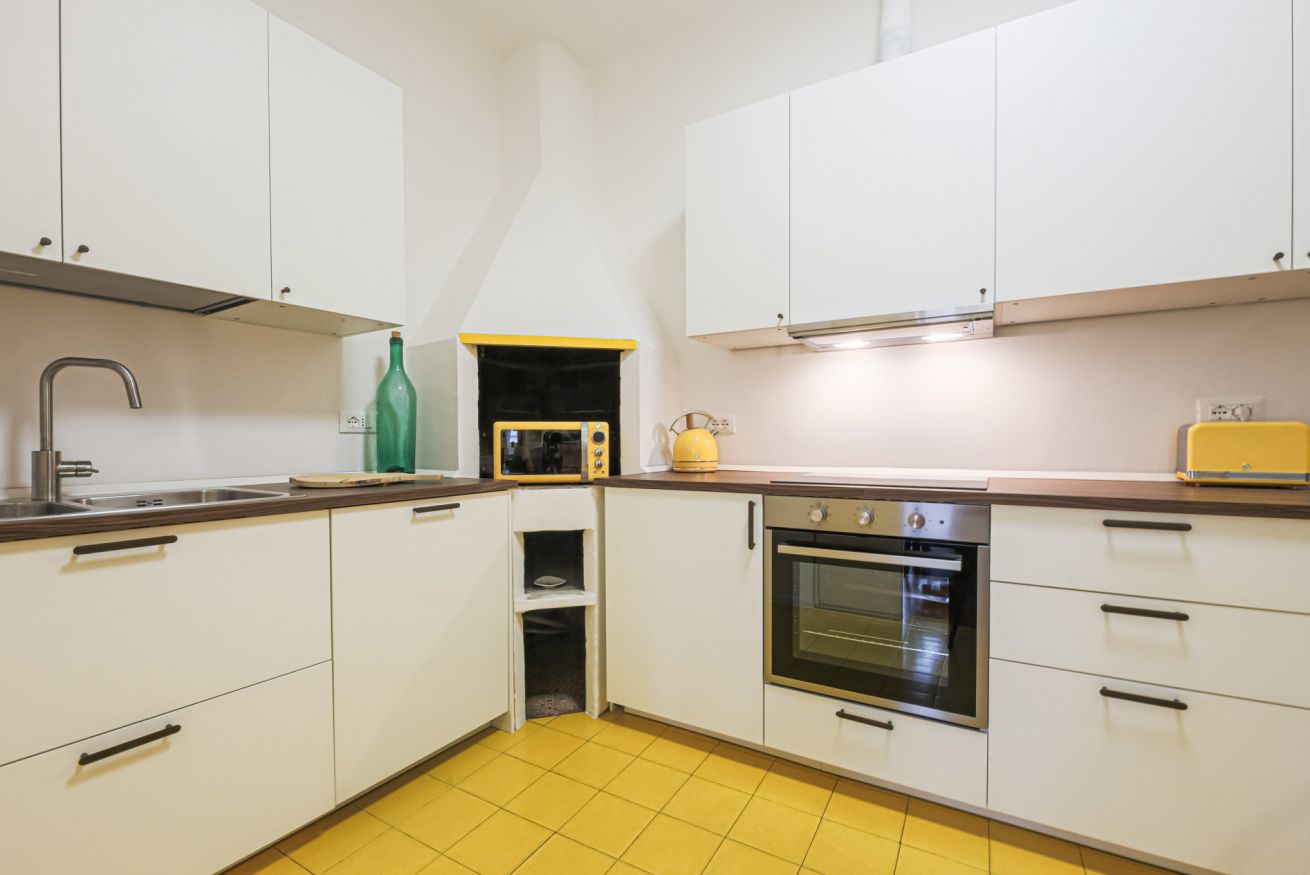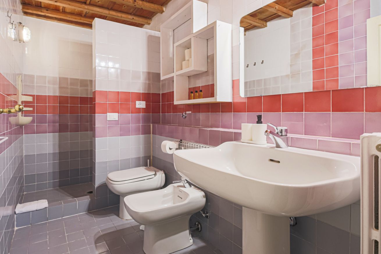 Canti dei Ciompi is a sizeable apartment that is spread over several levels in a horseshoe shape. Upon entering you are greeted by a practical hallway that acts as a watershed between the living and sleeping areas.