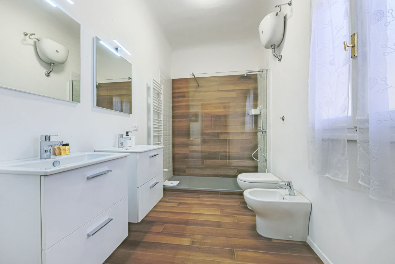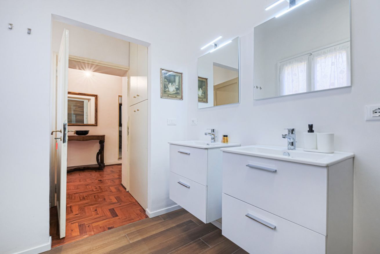 Returning to the lower level, the living room opens onto the large dining room with a rustic style and surrounded by furniture elements typical of the Florentine artisan tradition. Adjoining the dining room is the entirely remodeled kitchen with double refrigerator, induction stove and fully equipped for the preparation of all kinds of meals. It continues finally with the practical bathroom entirely renovated with double sink and a very spacious shower.