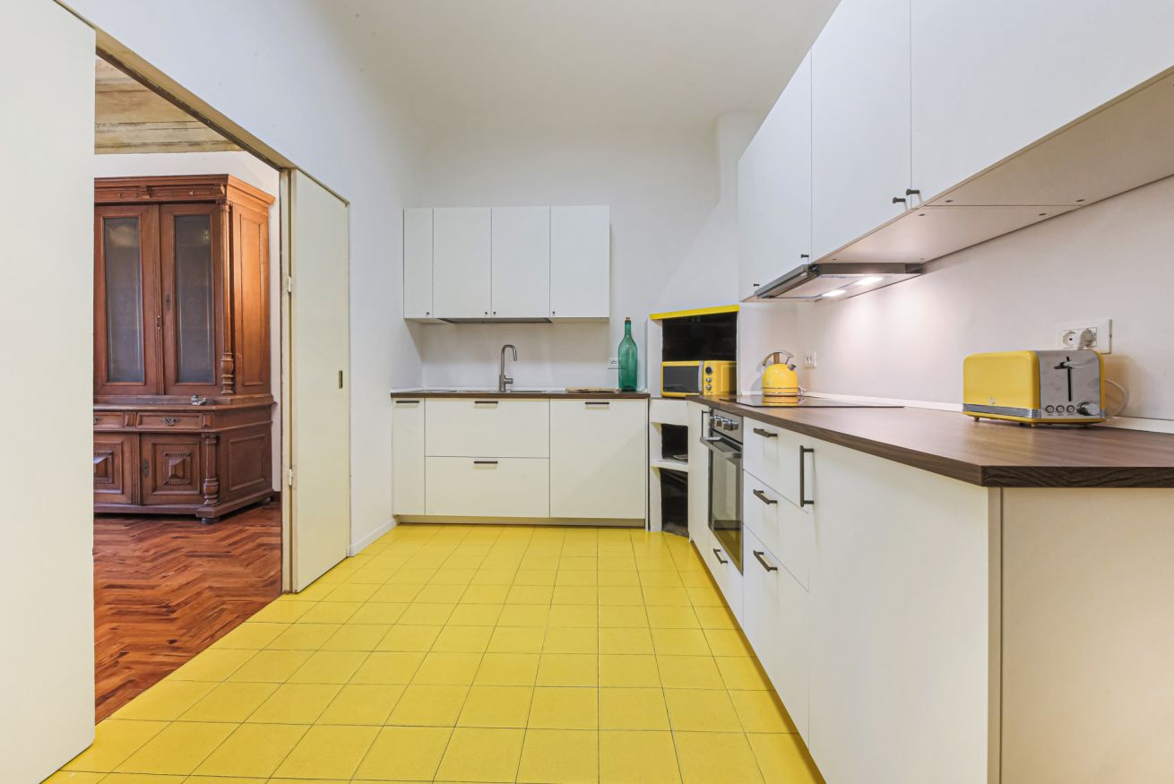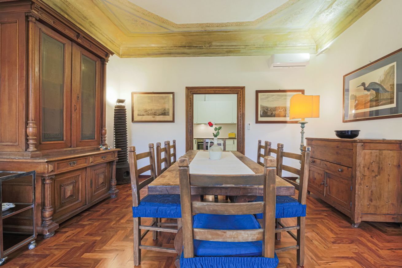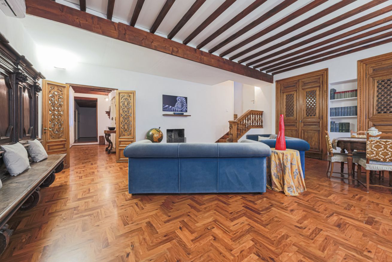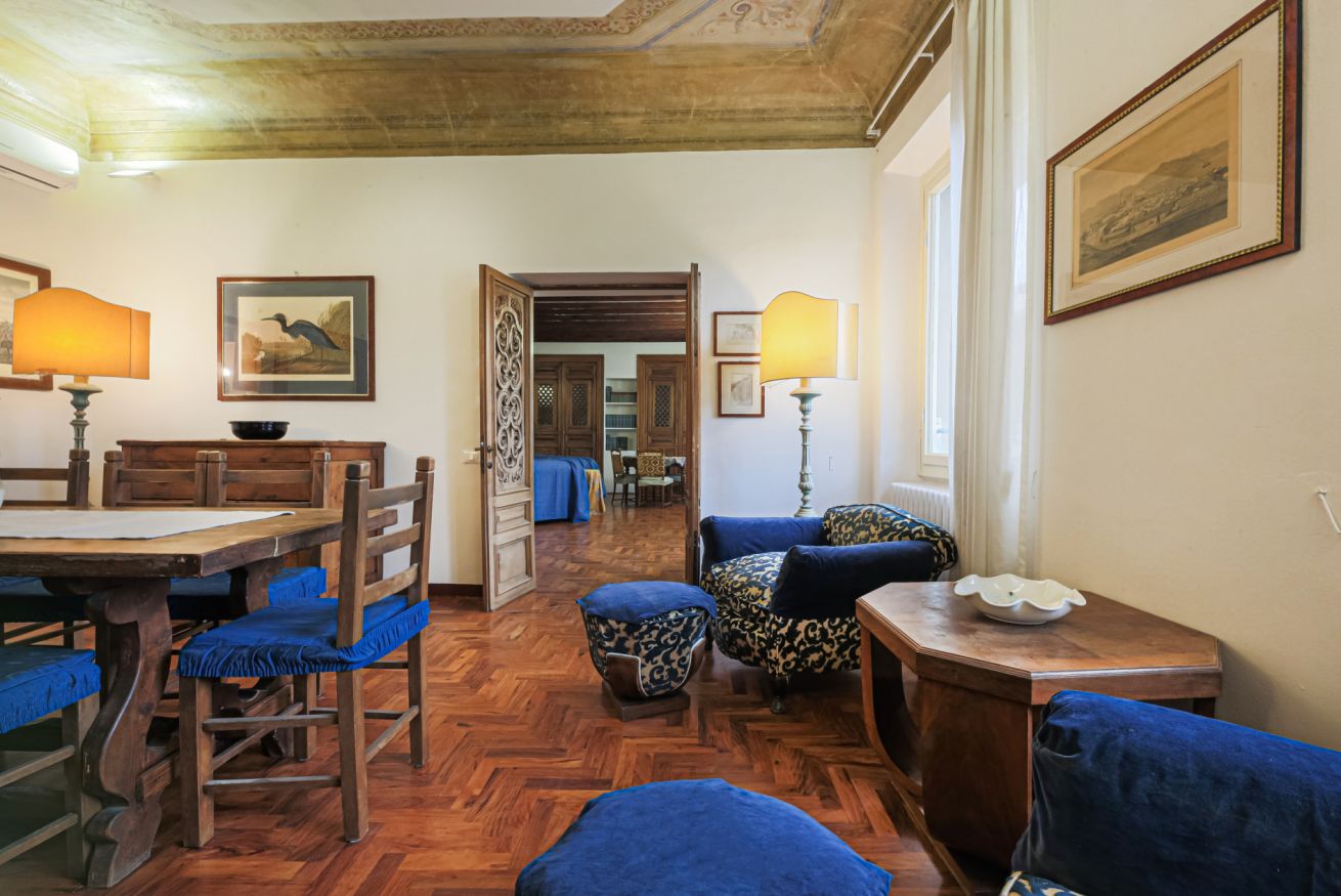 The apartment is located on the third floor of the building with elevator and was recently renovated. Furnished in the traditional Tuscan style with original elements of Florentine craftsmanship, Canto dei Ciompi is enriched with contemporary solutions due to the renovation. Flooded with natural light, this apartment stands out for its large spaces and enjoys special views. Parquet floors, exposed beams and ornate ceilings give the space an old-world charm.