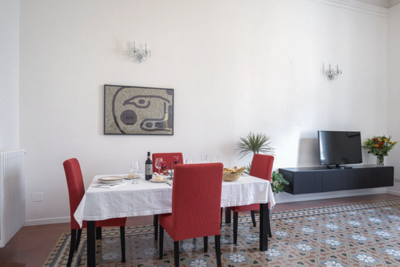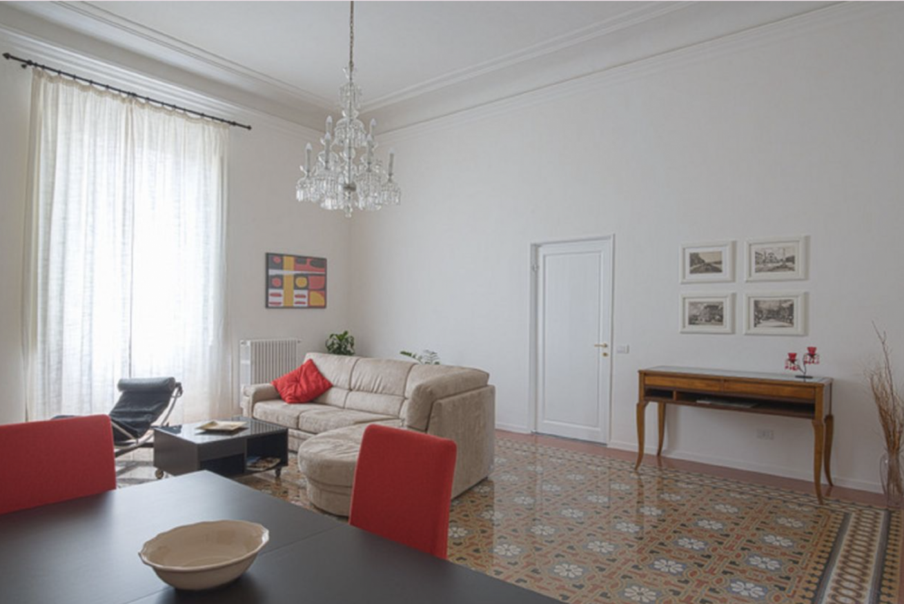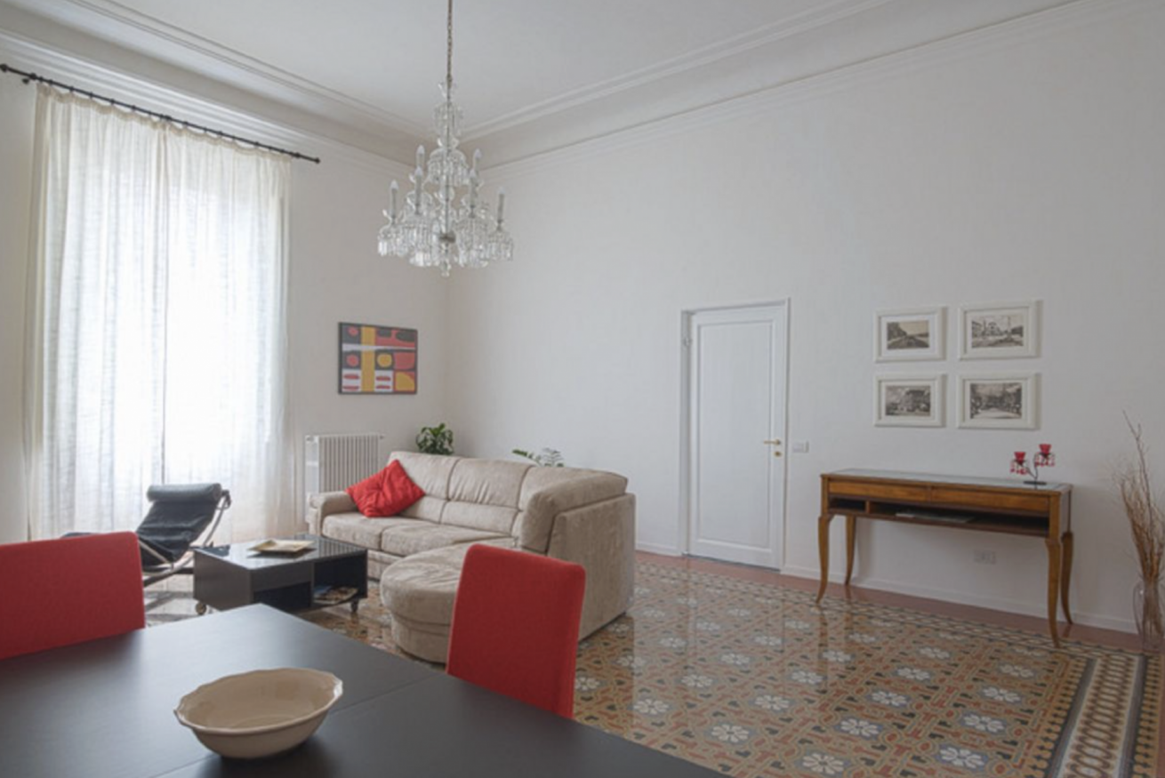 This beautiful recently renovated apartment is located on the first floor of an elegant building in Via G. Carducci, a residential street just off Piazza Sant'Ambrogio and round the corner from Florence's beautiful Synagogue. The whole place has been completely restored according to tradition, without altering the marvelous tiles of the original floorings, and maintaining a sober yet classy and colorful style throughout. Every room is flooded with natural light thanks to the many large windows and the high ceilings.
