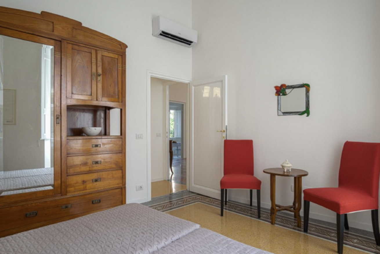 The master bedroom features a large queen size bed, closet and night tables, as well as a wonderful modern en suite bathroom with huge walk-in shower. The second bedroom features a couple of single beds and a wonderful ancient wooden closet. You'll find these room's airy, welcoming atmosphere very soothing, providing moments of true relaxation and good rest.