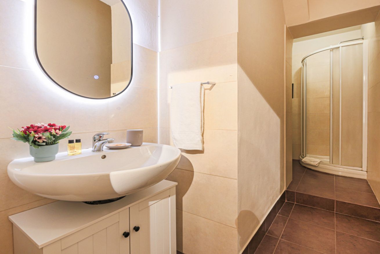 Also accessible from the living room is the bathroom with shower, completing the apartment.