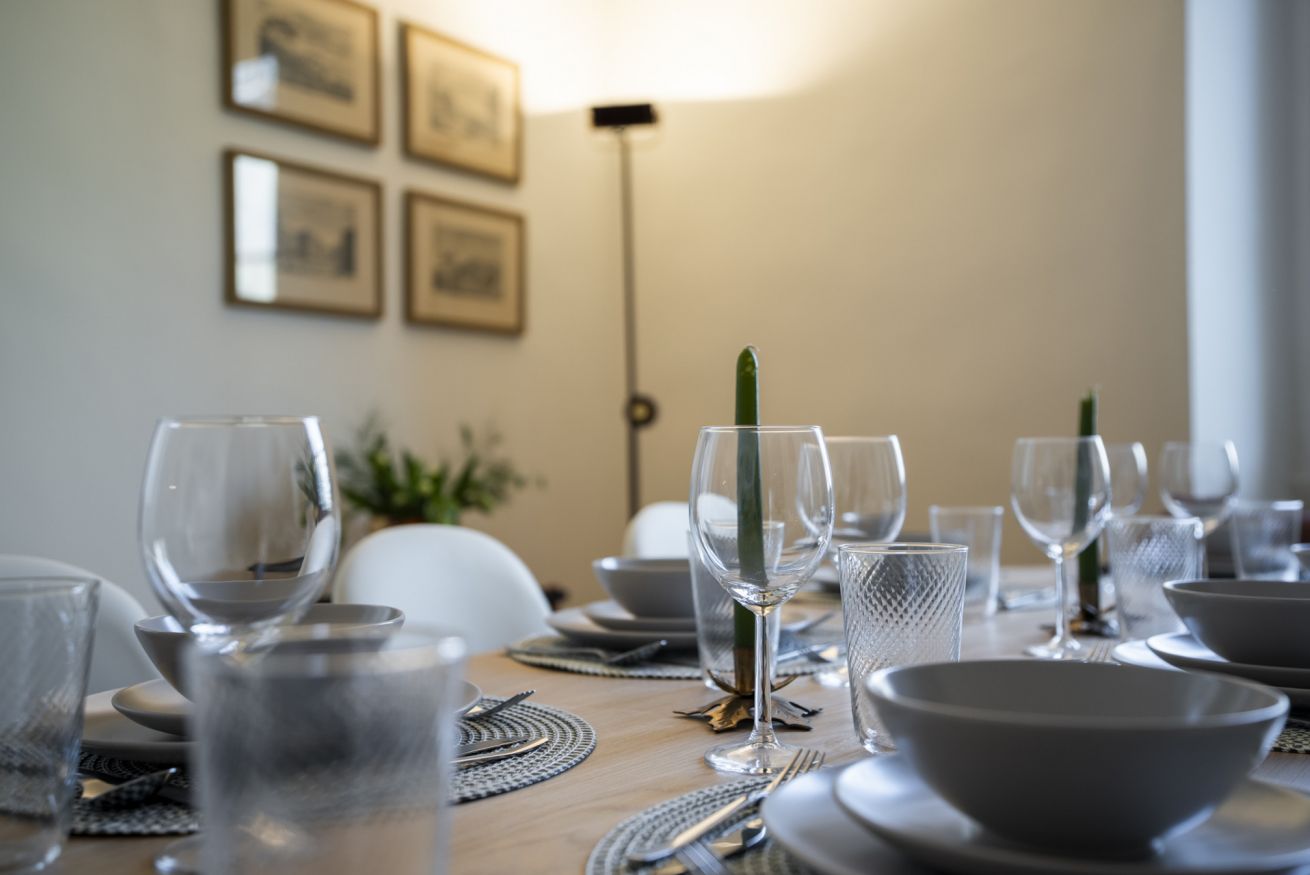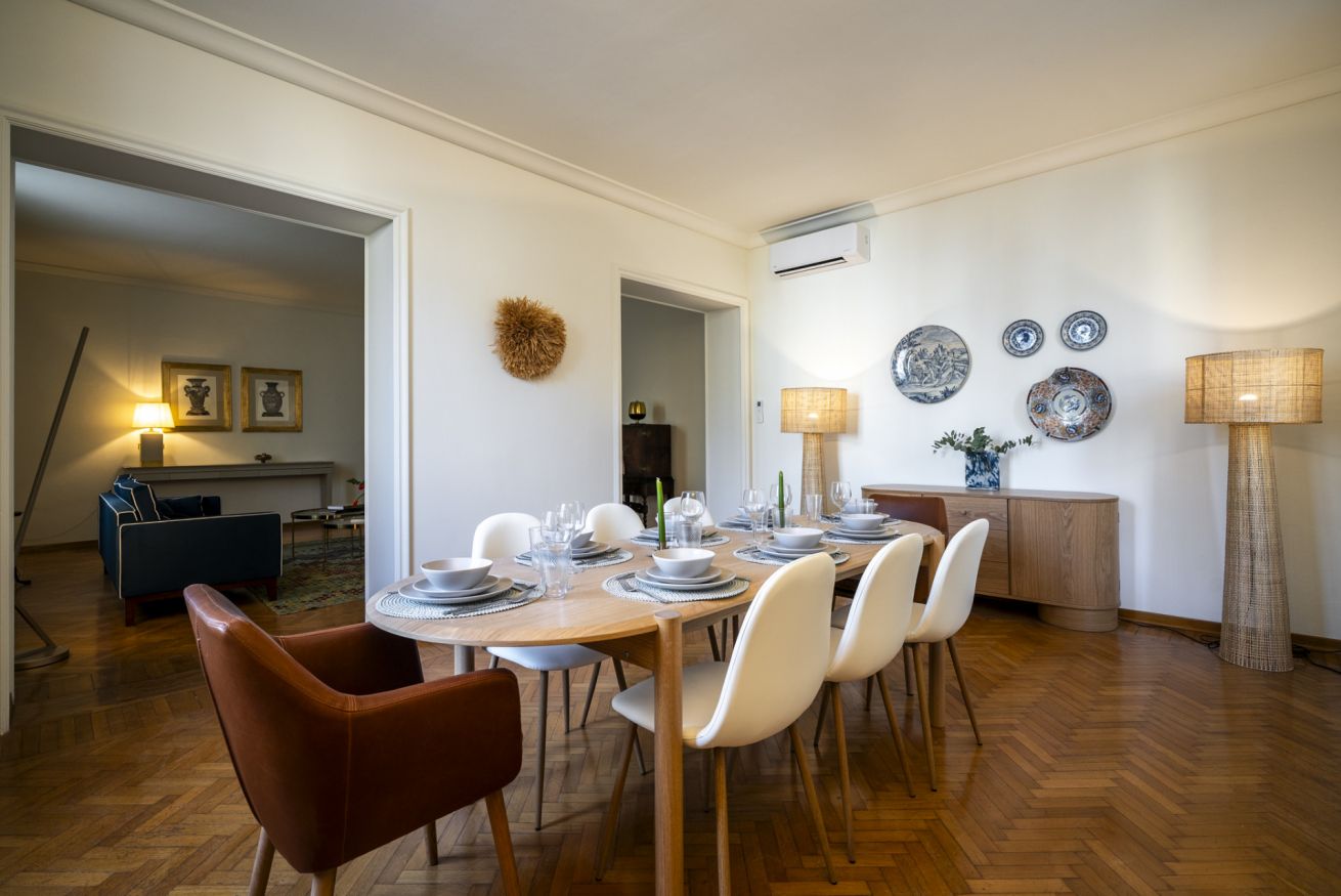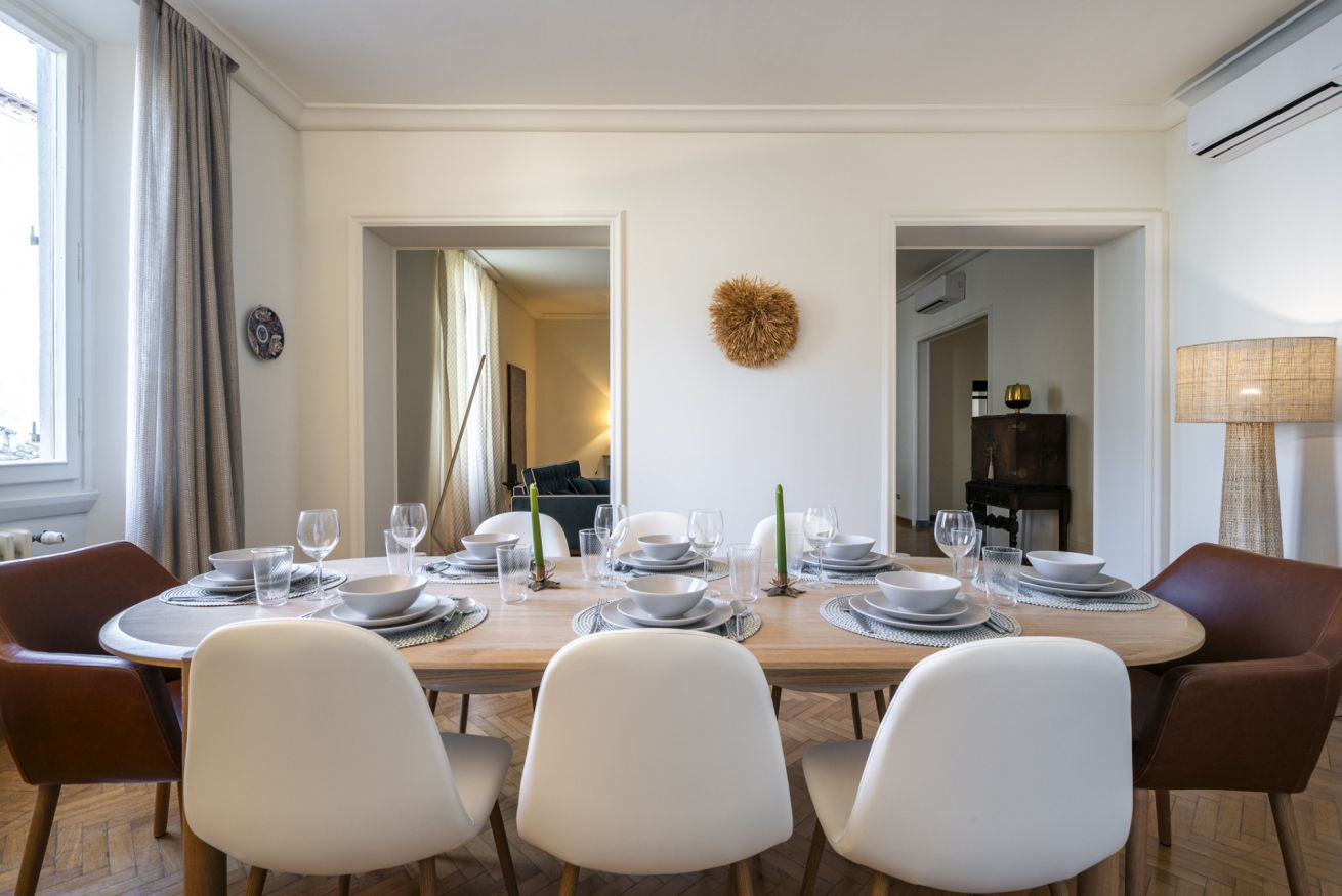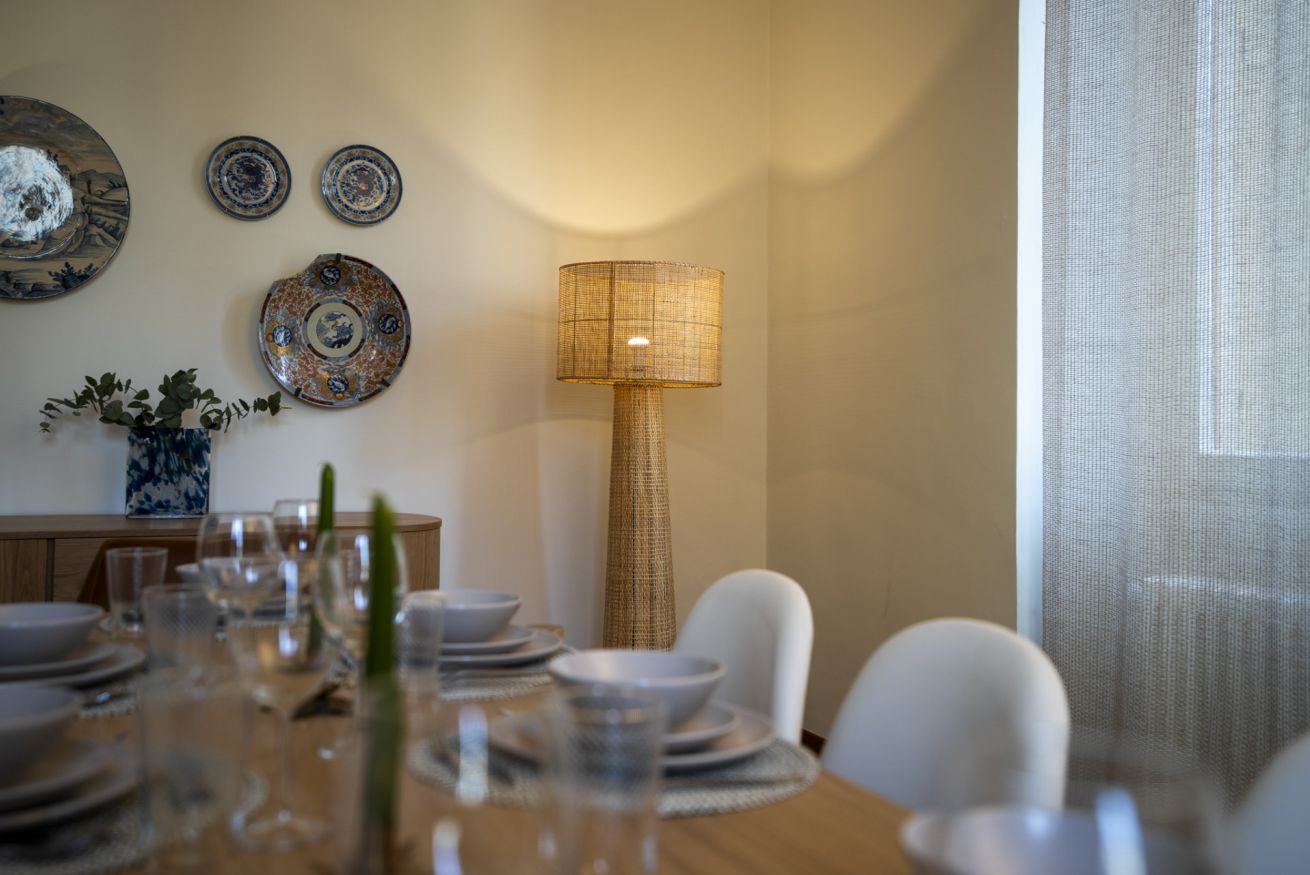 The living room opens onto the bright and welcoming dining room, centered around a large table seating up to 8 guests, perfect for sharing unforgettable moments together. In the living area there is also a convenient guest bathroom.