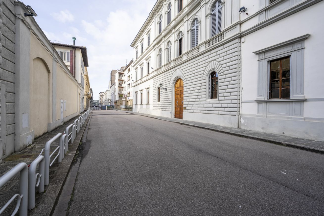 Located on a quiet, secluded street, the property sits in one of the city’s most exclusive neighborhoods, just a short walk from the river Arno.