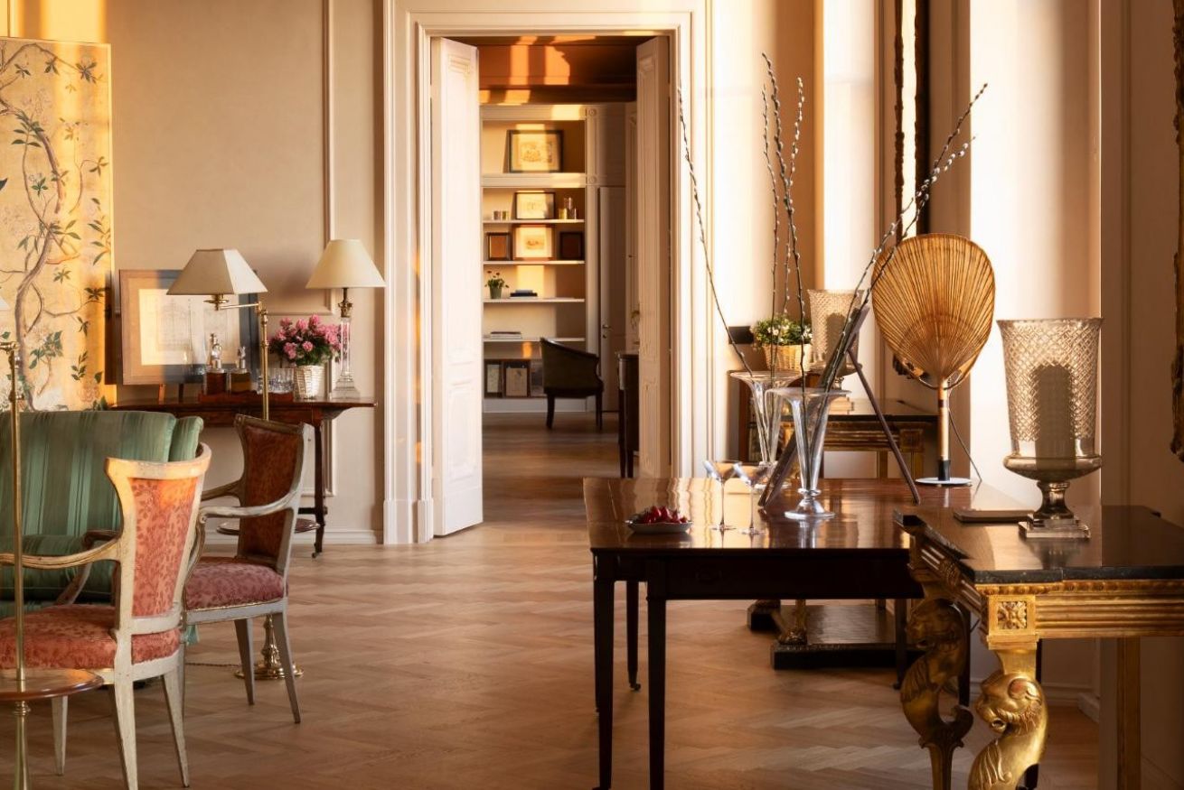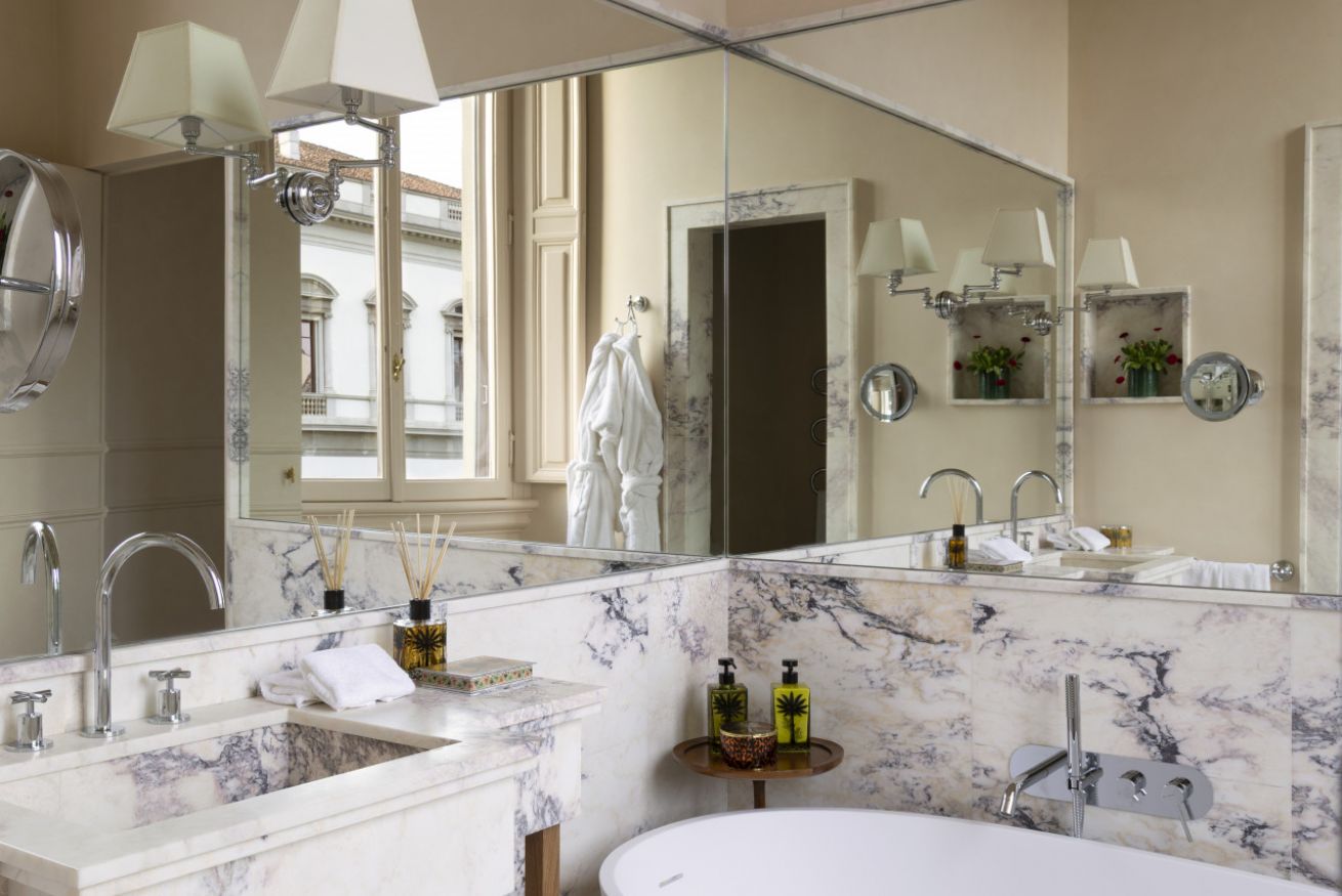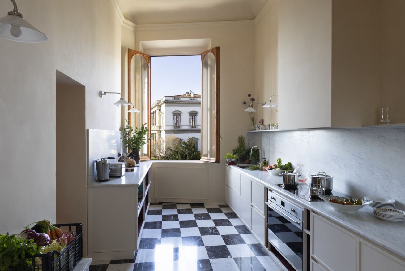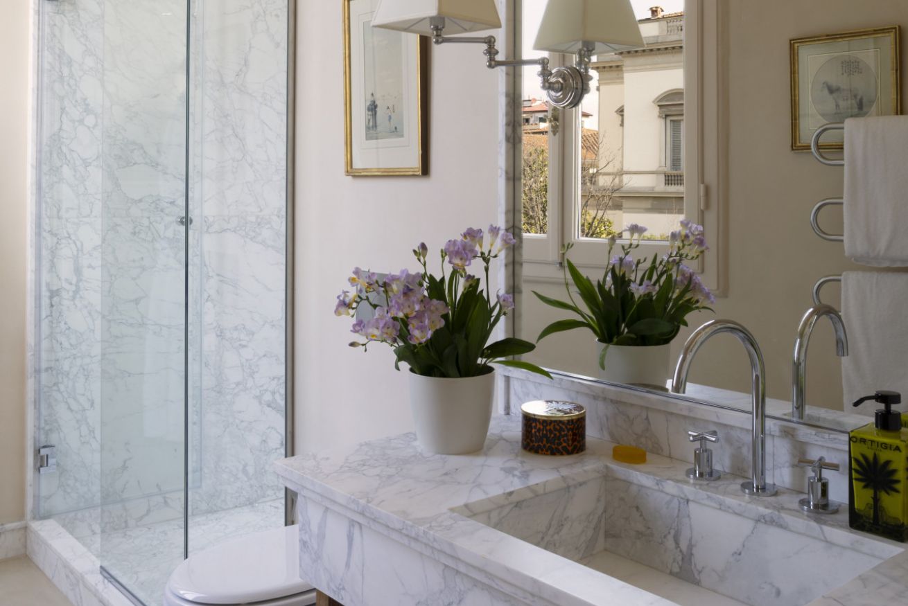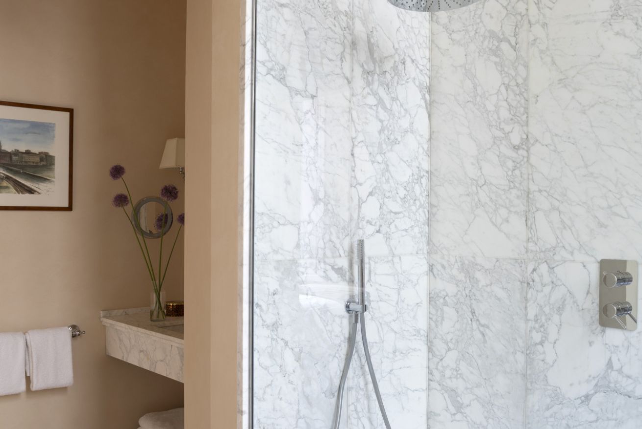 Vespucci Riverside Palace is a unique 475 sq m apartment ideal for family and friends groups seeking to experience the original atmosphere of a historical Florentine family in the city centre. Surrounded by history, culture and breathtaking views, the palace is a prominent landmark on the Lungarno Vespucci skyline in front of the American Consulate. Located on the main floor of this historic residence, the apartment faces the Arno River from its balcony which extends from the iconic Ponte Vecchio the Abbey of San Miniato al Monte to the expansive greenery of the Cascine. Bathed in natural light by its tall glass windows, the apartment provides an exceptional sense of space and elegance. It accommodates up to 10 guests across five beautifully appointed bedrooms with ensuite newly renovated marble bathrooms ensuring extemporaneous elegance with modern comfort. An additional bedroom with ensuite bathroom is also available for nannies or housekeeping staff.