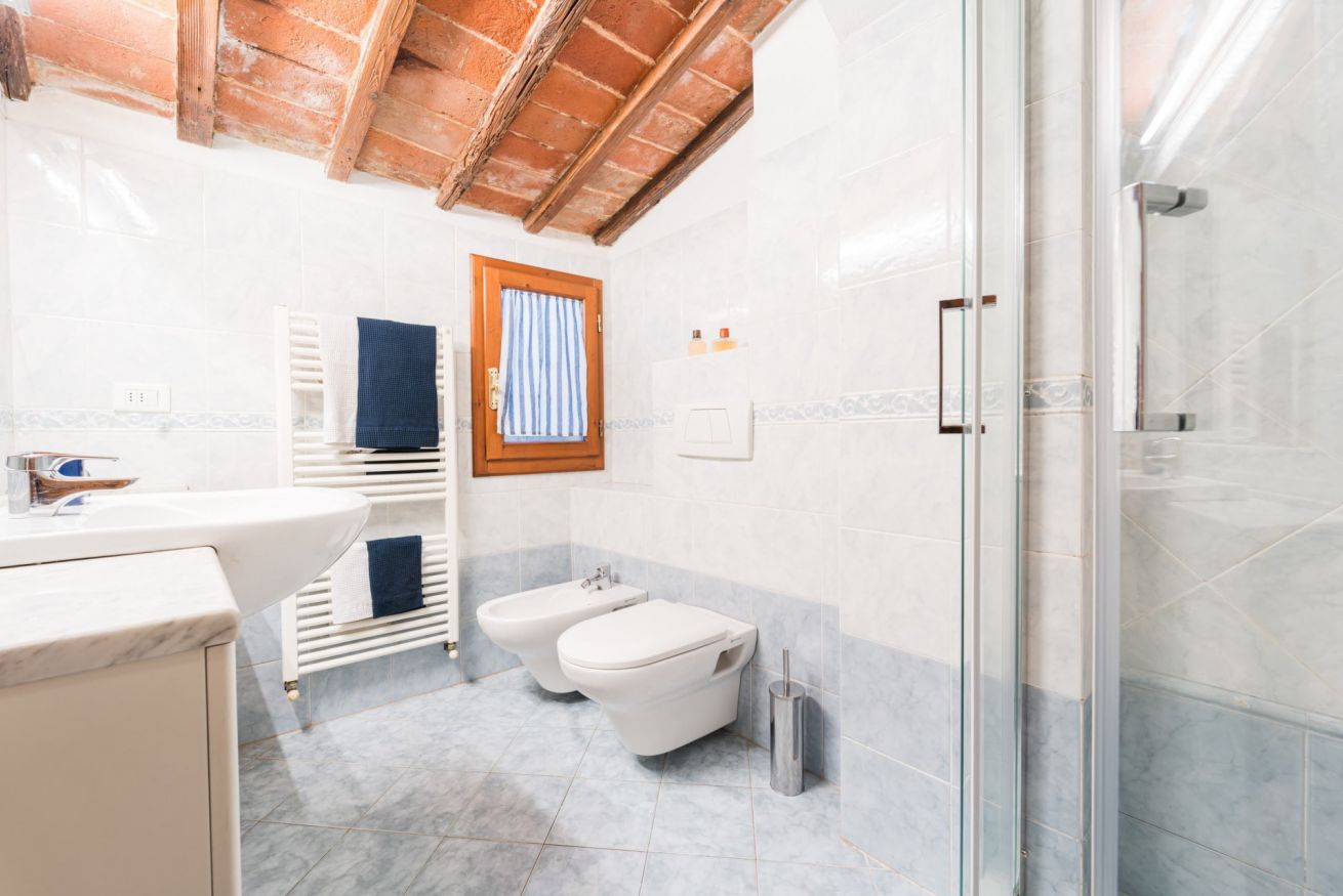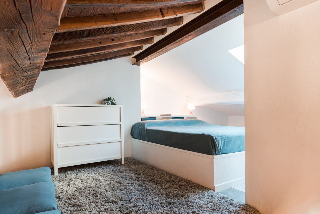 Located on the 2nd floor (no elevator) of a typical building in Florence’s Oltrarno district, Serragli Loft enjoys an enviable position. The well-balanced layout, elegant parquet flooring in warm tones, and carefully selected furnishings create a welcoming and comfortable atmosphere. The apartment has been renovated while preserving original architectural elements, such as exposed wooden beams, which enhance its character and uniqueness.